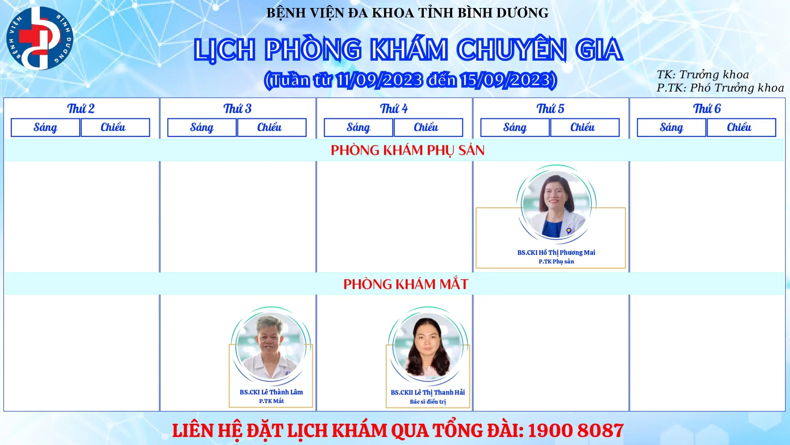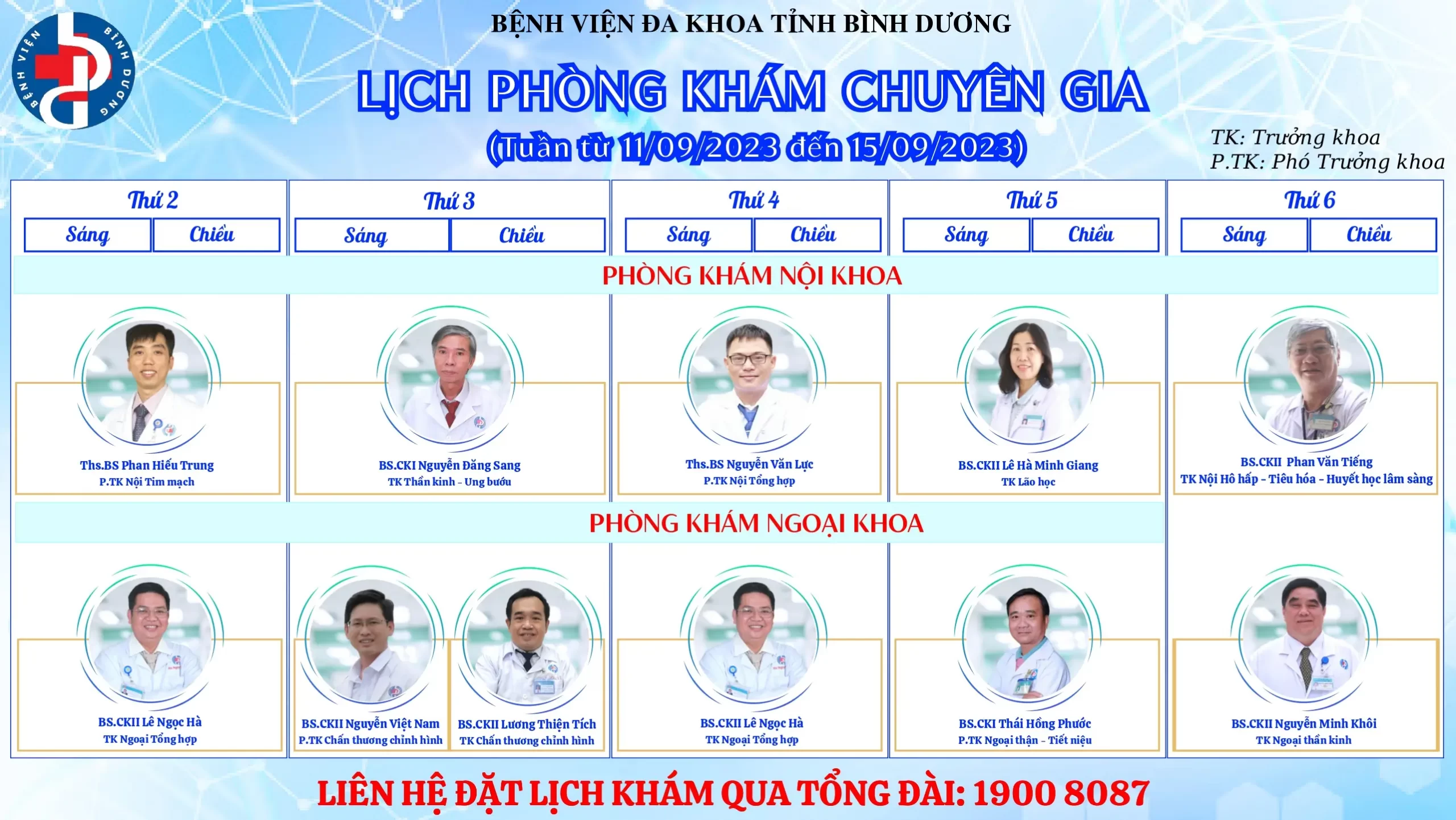 🌟🌟🌟LỊCH PHÒNG KHÁM CHUYÊN GIA BỆNH VIỆN ĐA KHOA TỈNH BÌNH DƯƠNG.