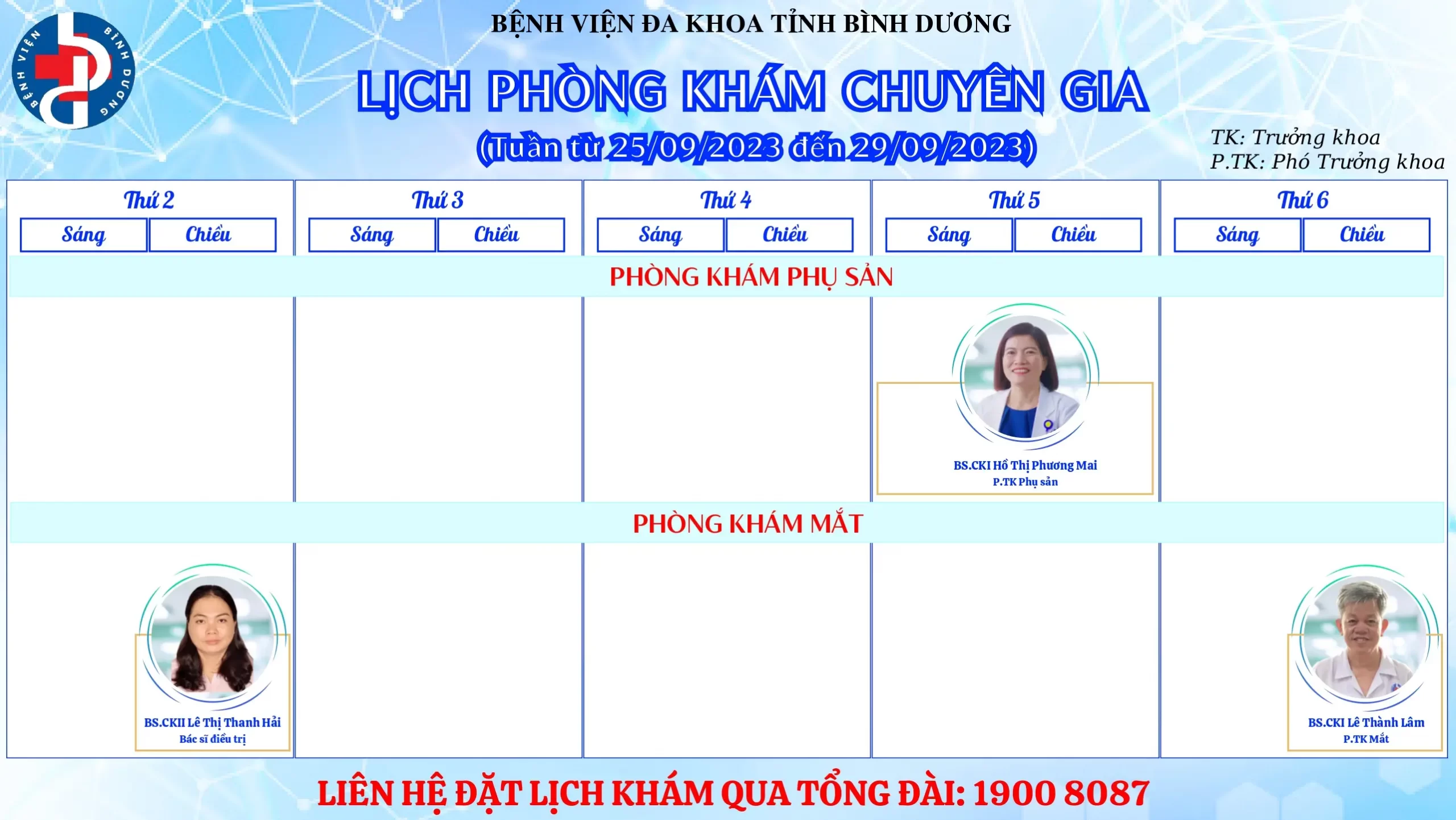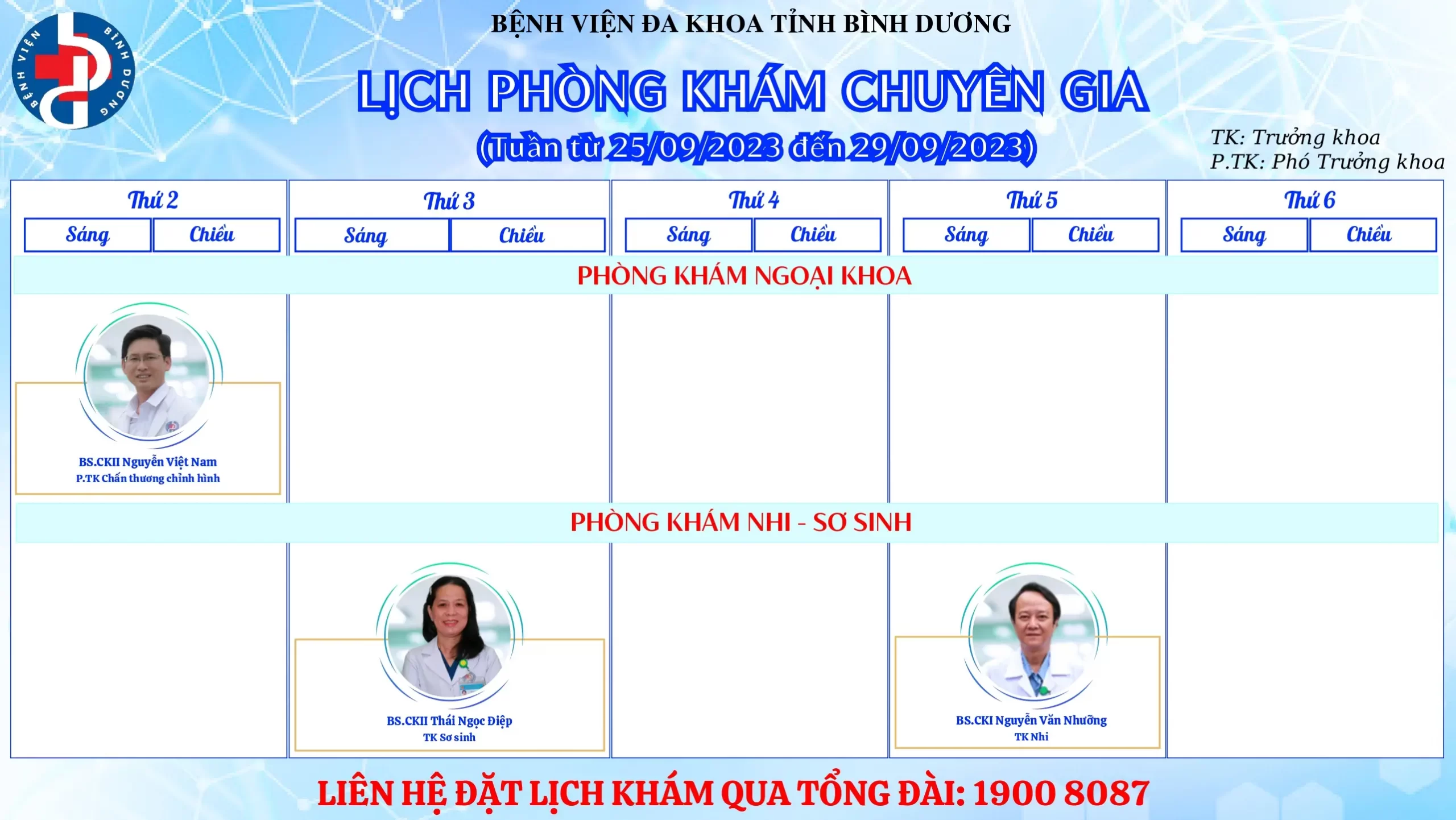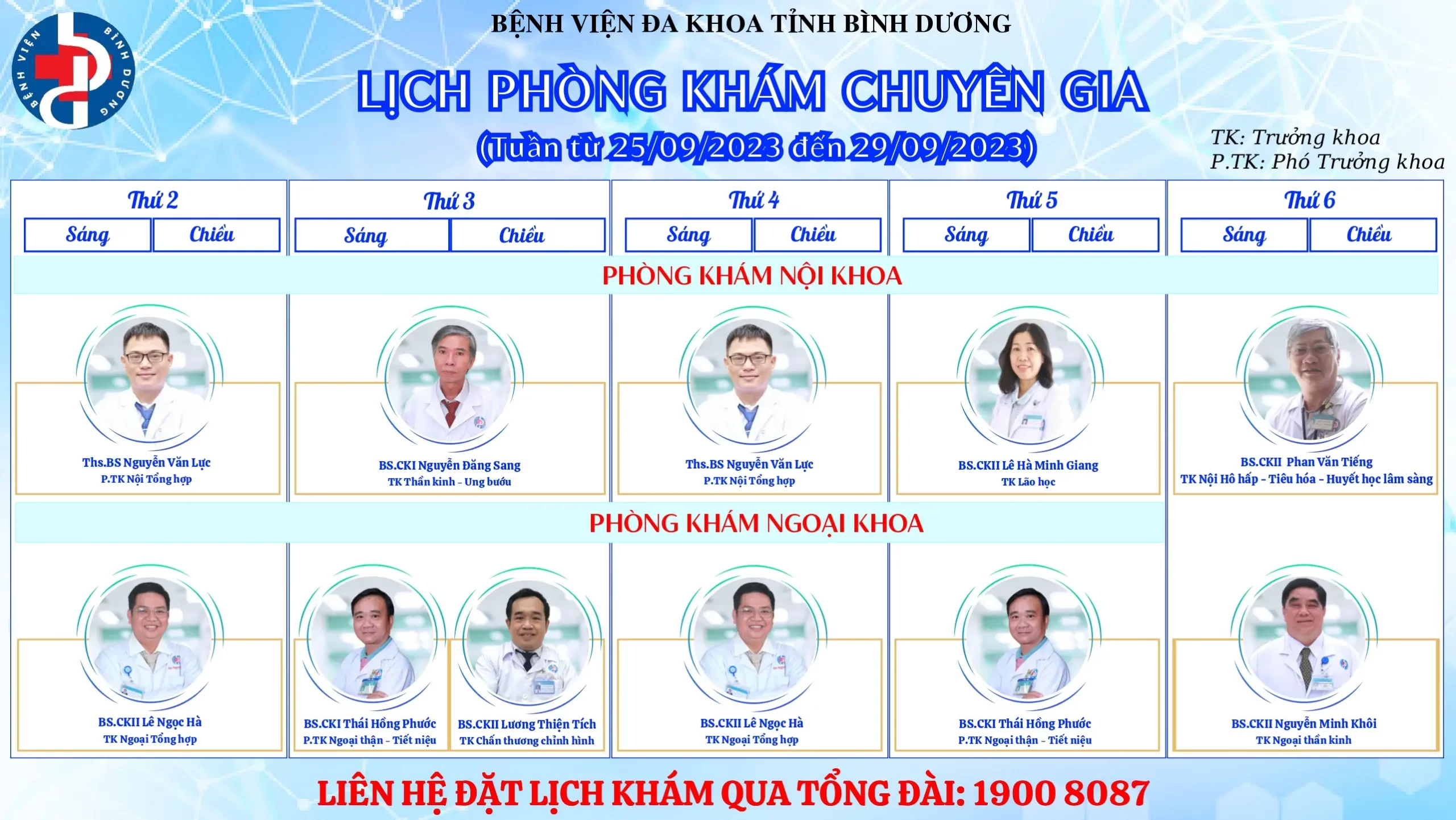 🌟🌟🌟LỊCH PHÒNG KHÁM CHUYÊN GIA BỆNH VIỆN ĐA KHOA TỈNH BÌNH DƯƠNG.