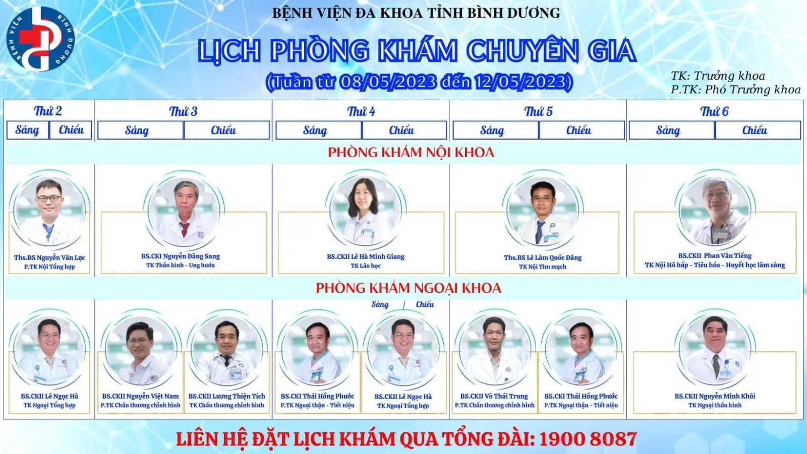 🌟🌟🌟LỊCH PHÒNG KHÁM CHUYÊN GIA BỆNH VIỆN ĐA KHOA TỈNH BÌNH DƯƠNG.