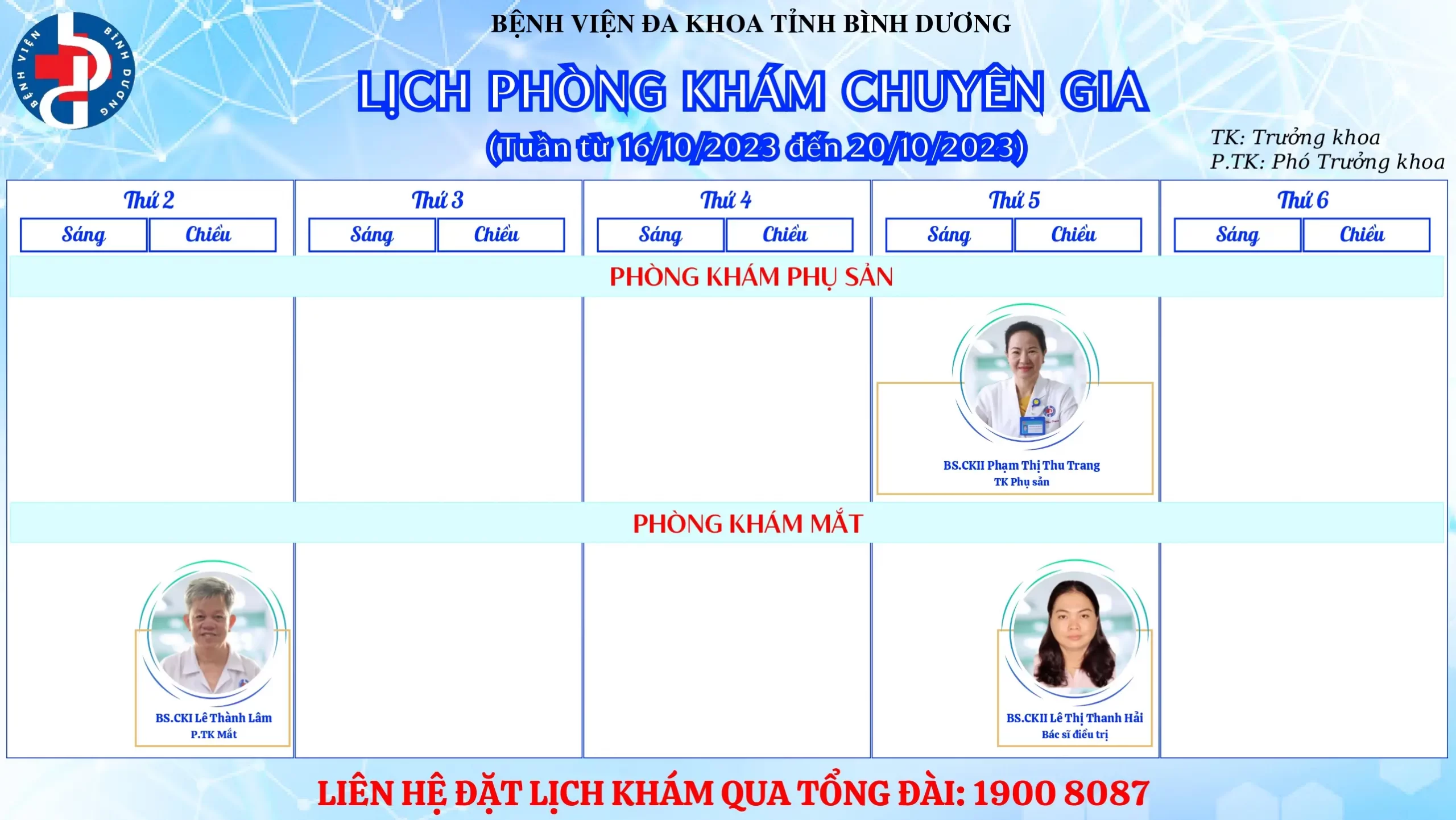 🌟🌟🌟LỊCH PHÒNG KHÁM CHUYÊN GIA BỆNH VIỆN ĐA KHOA TỈNH BÌNH DƯƠNG.