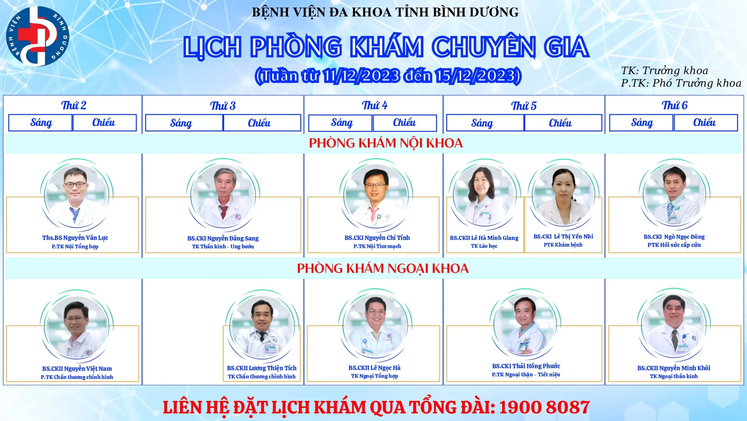 🌟🌟🌟LỊCH PHÒNG KHÁM CHUYÊN GIA BỆNH VIỆN ĐA KHOA TỈNH BÌNH DƯƠNG.
