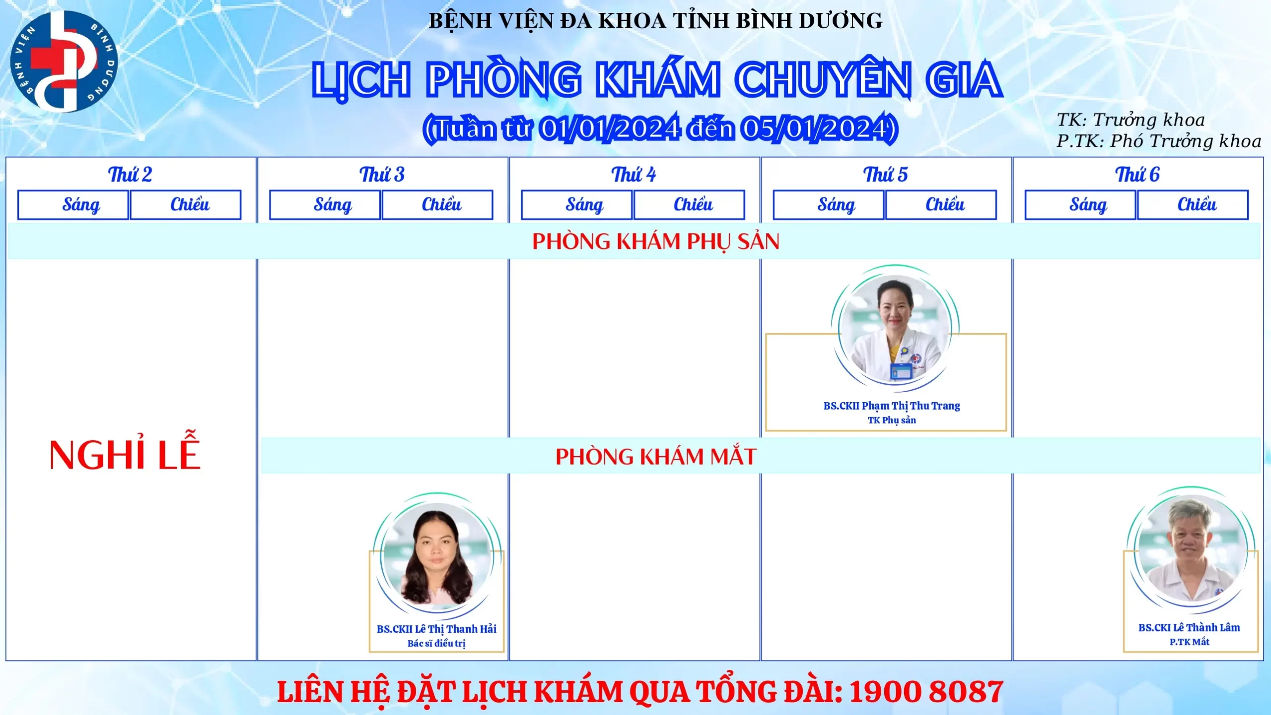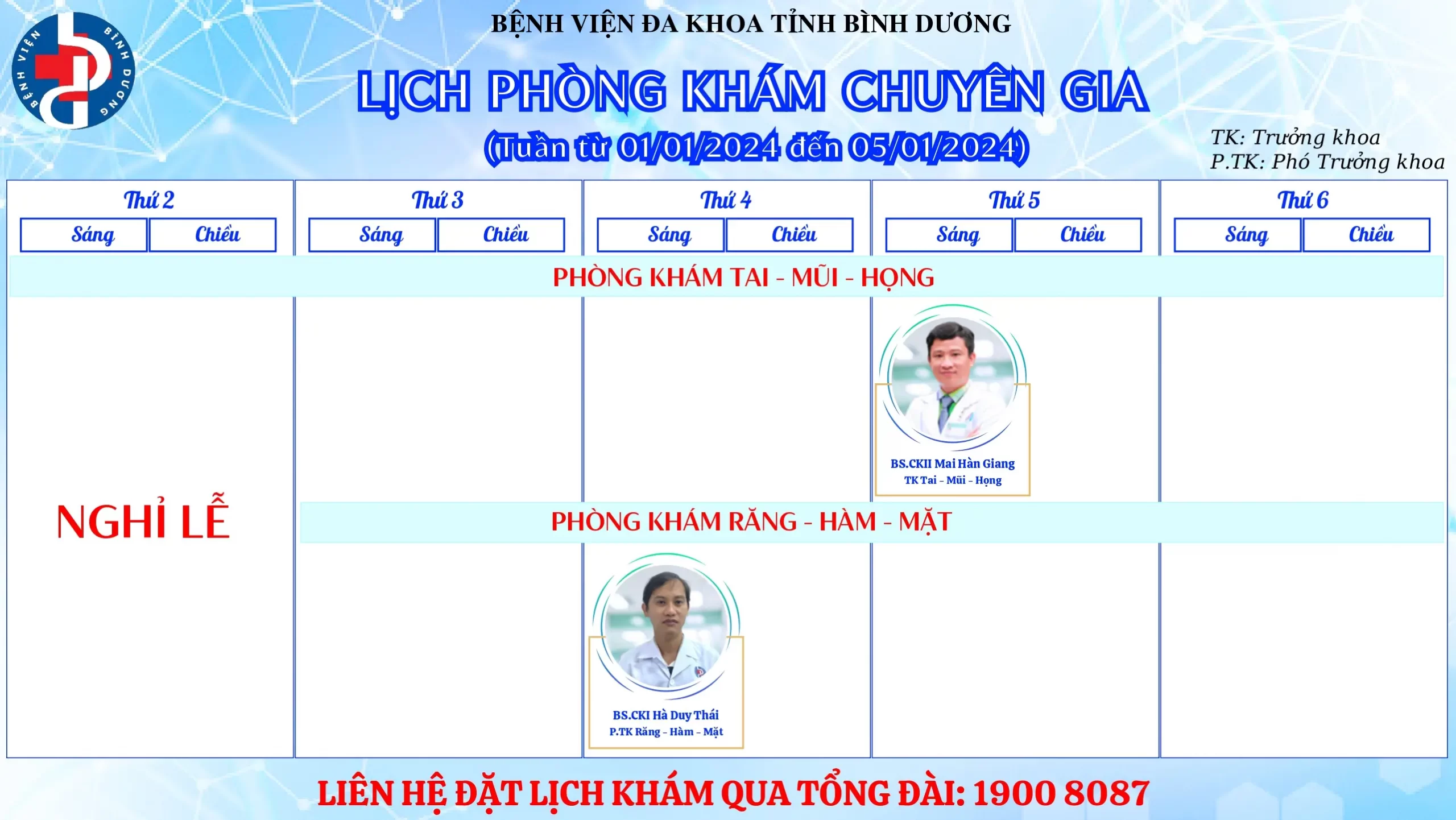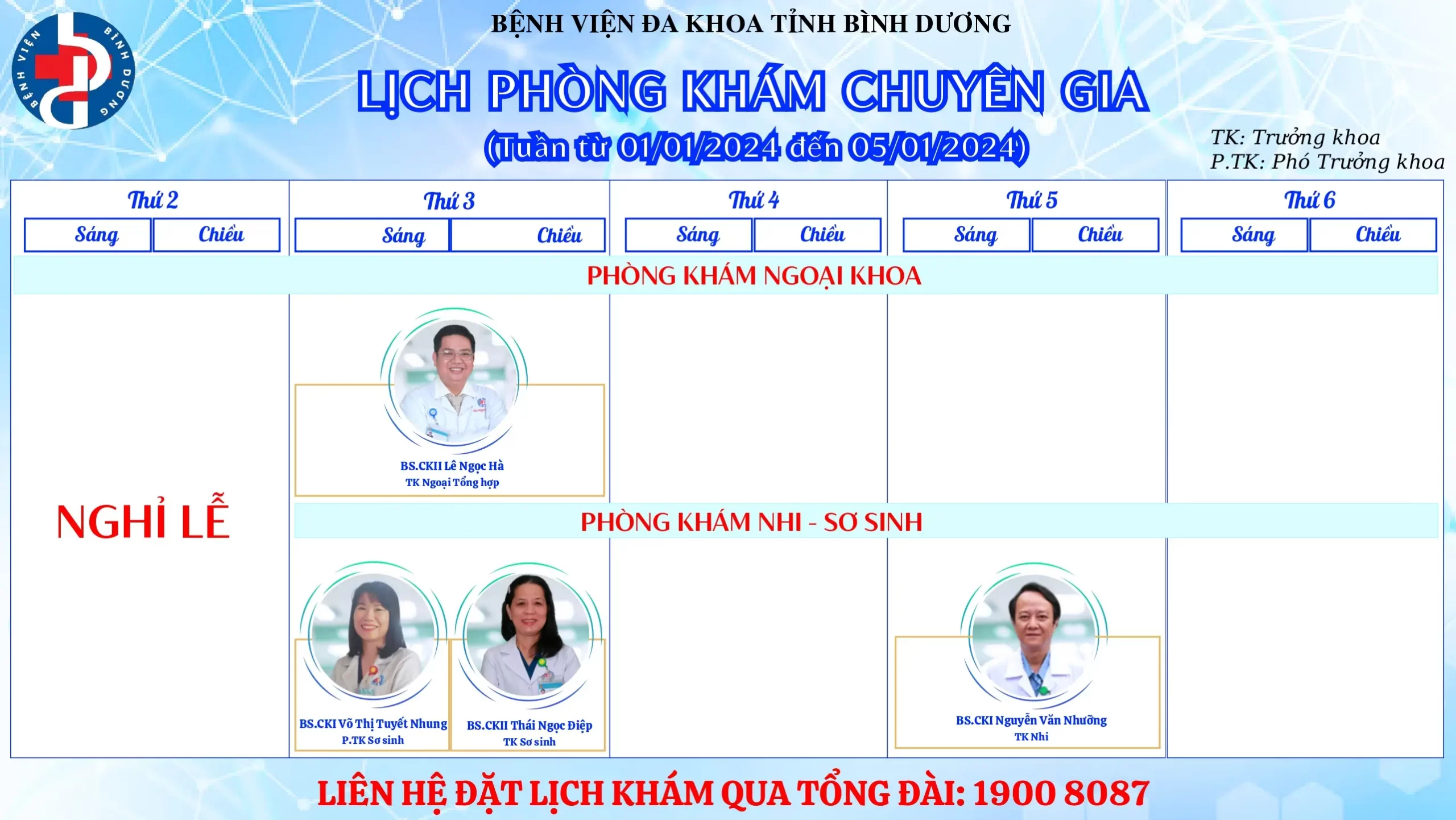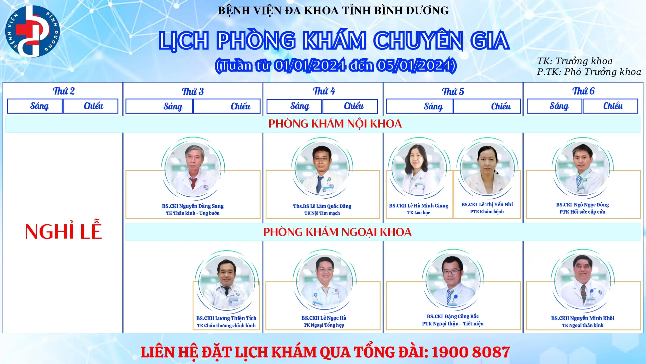🌟🌟🌟LỊCH PHÒNG KHÁM CHUYÊN GIA BỆNH VIỆN ĐA KHOA TỈNH BÌNH DƯƠNG.
