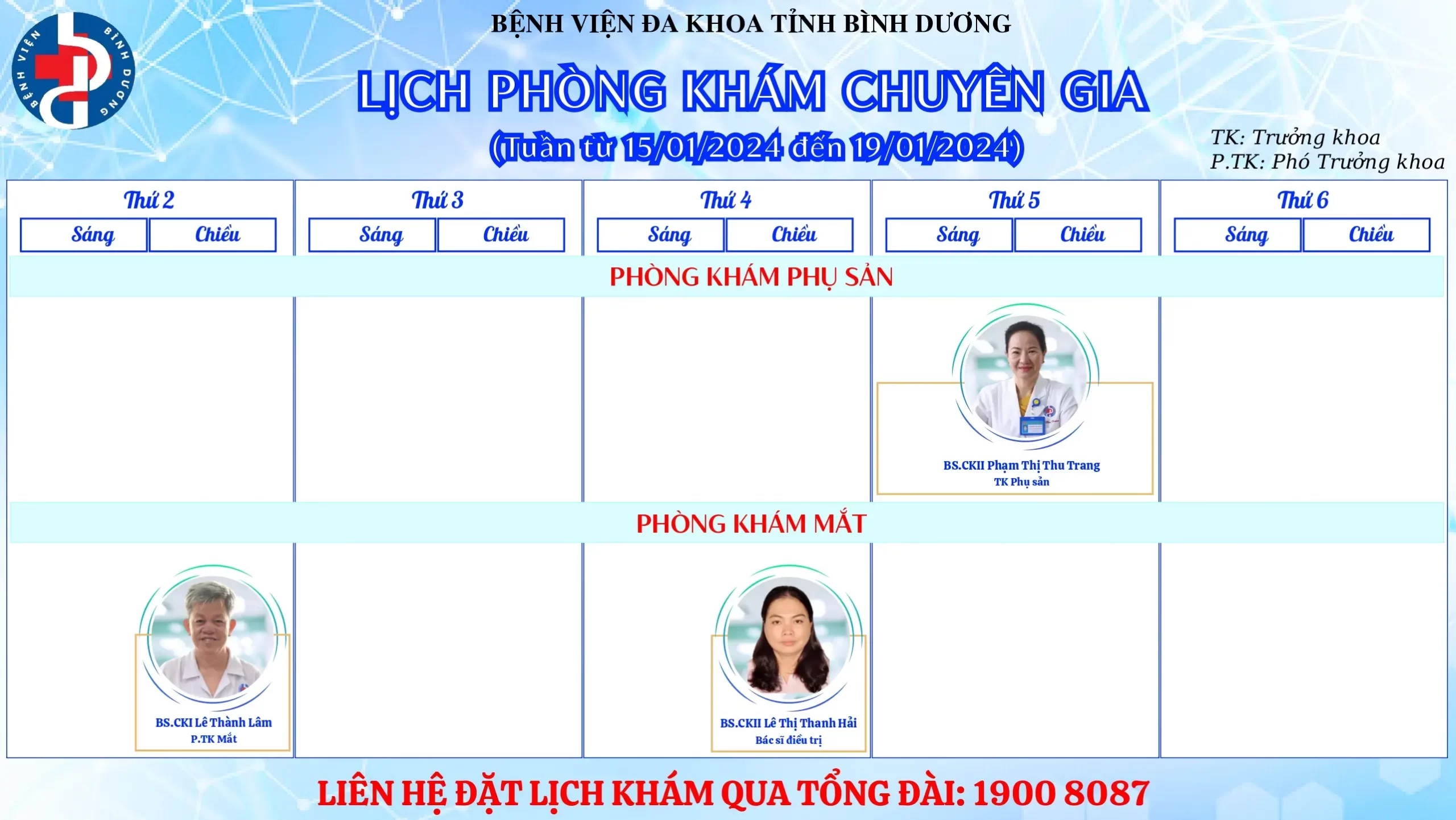 🌟🌟🌟LỊCH PHÒNG KHÁM CHUYÊN GIA BỆNH VIỆN ĐA KHOA TỈNH BÌNH DƯƠNG.