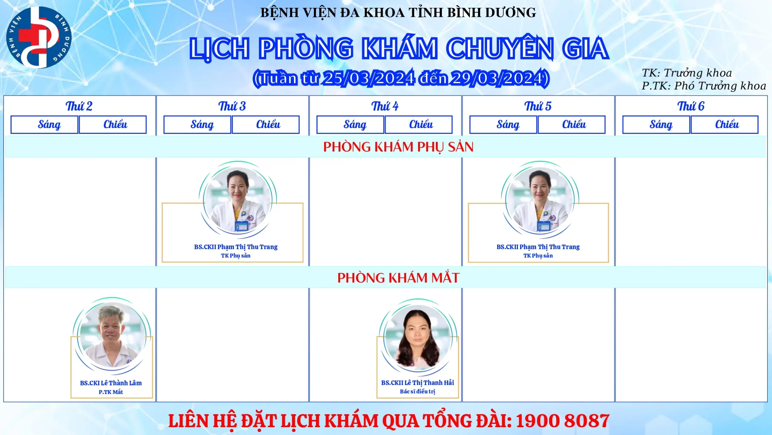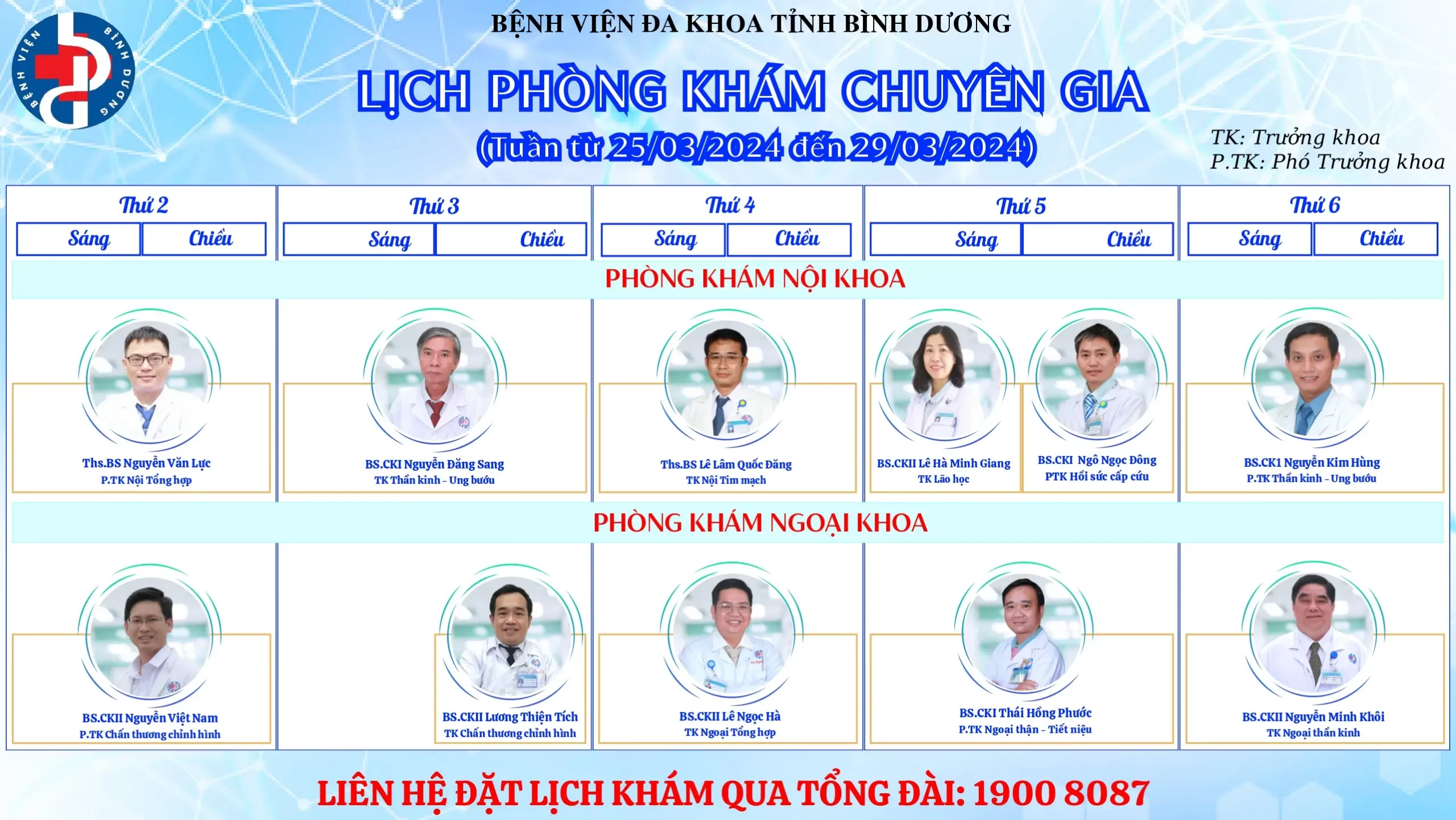 🌟🌟🌟LỊCH PHÒNG KHÁM CHUYÊN GIA BỆNH VIỆN ĐA KHOA TỈNH BÌNH DƯƠNG