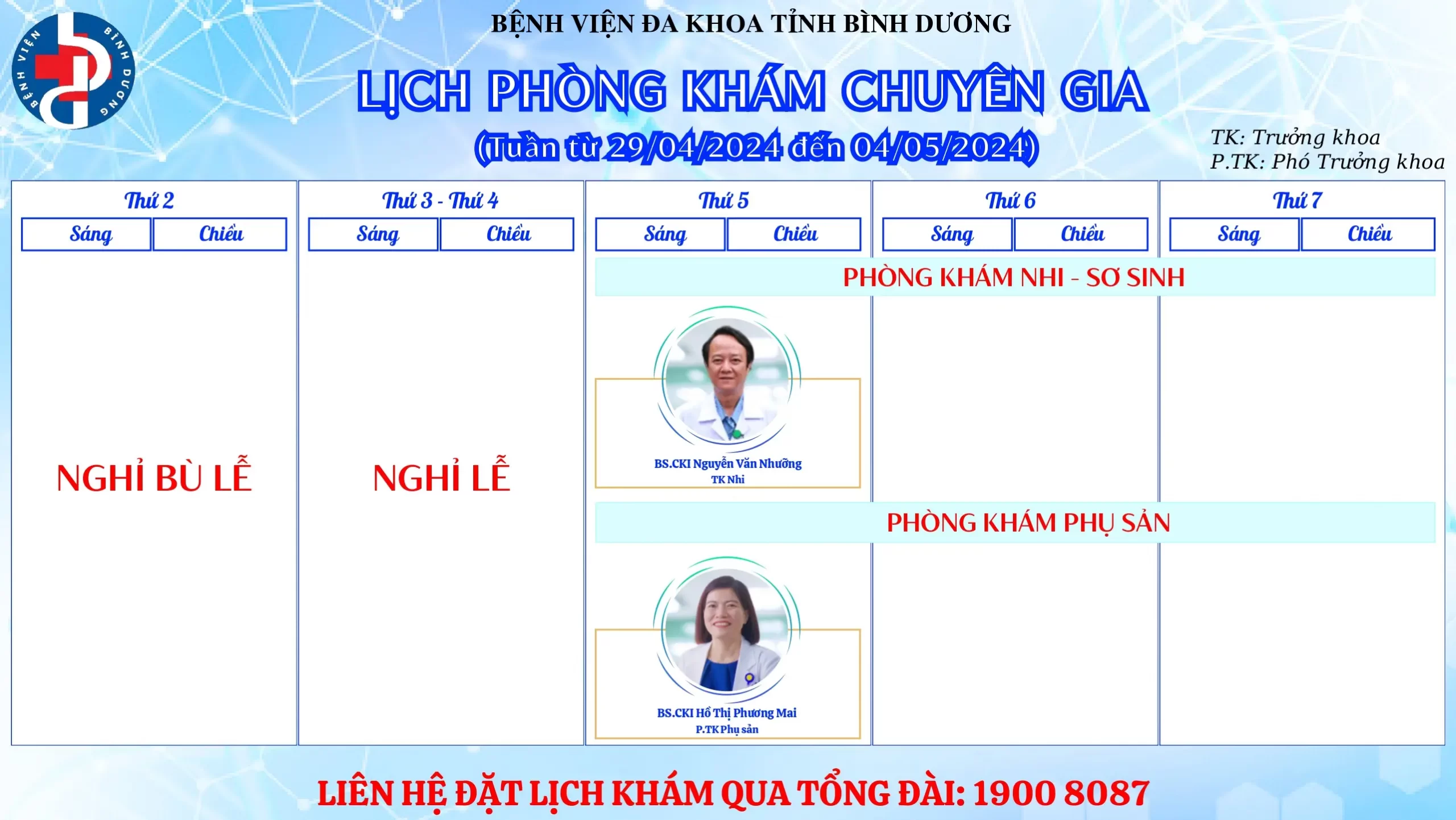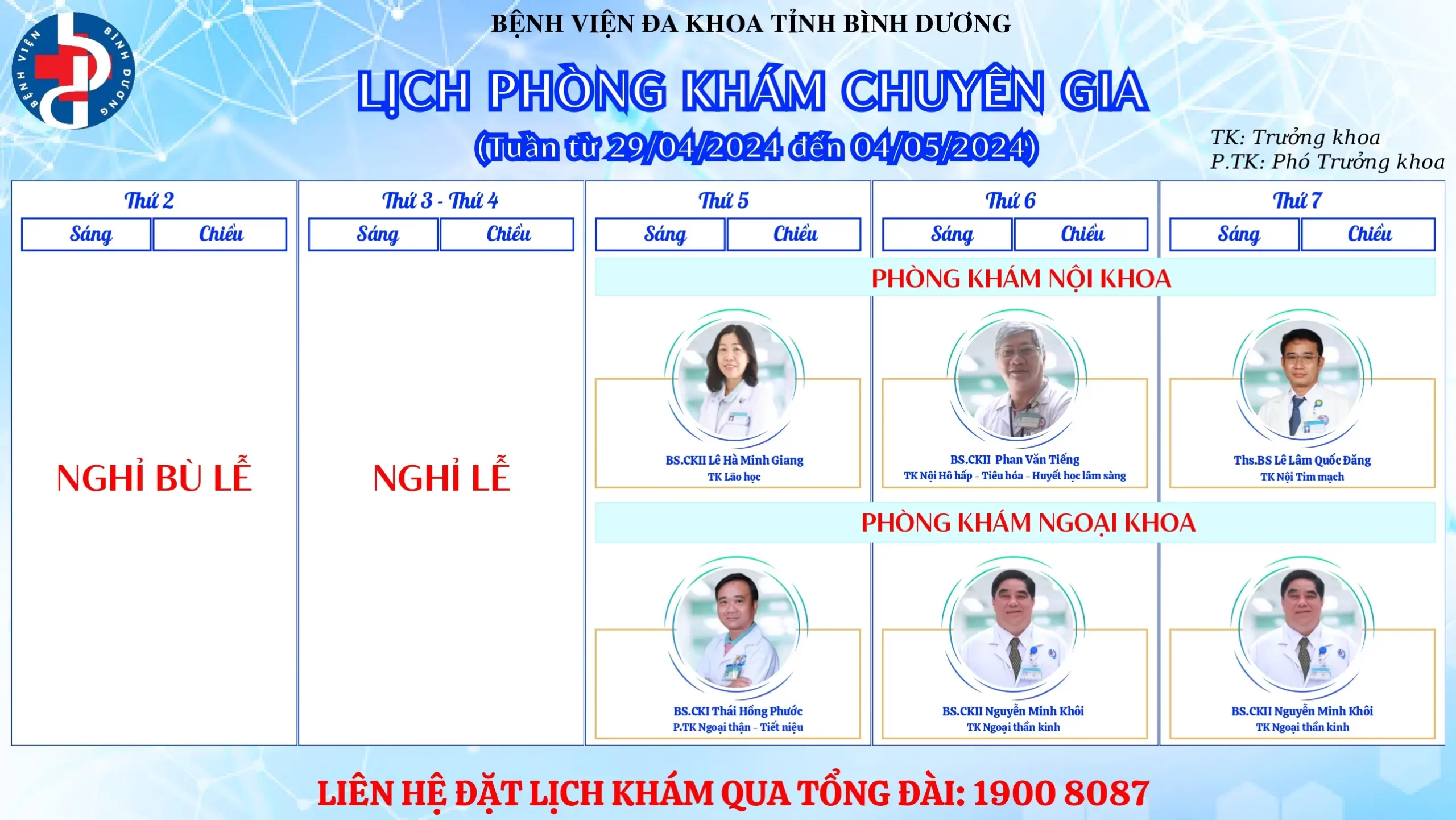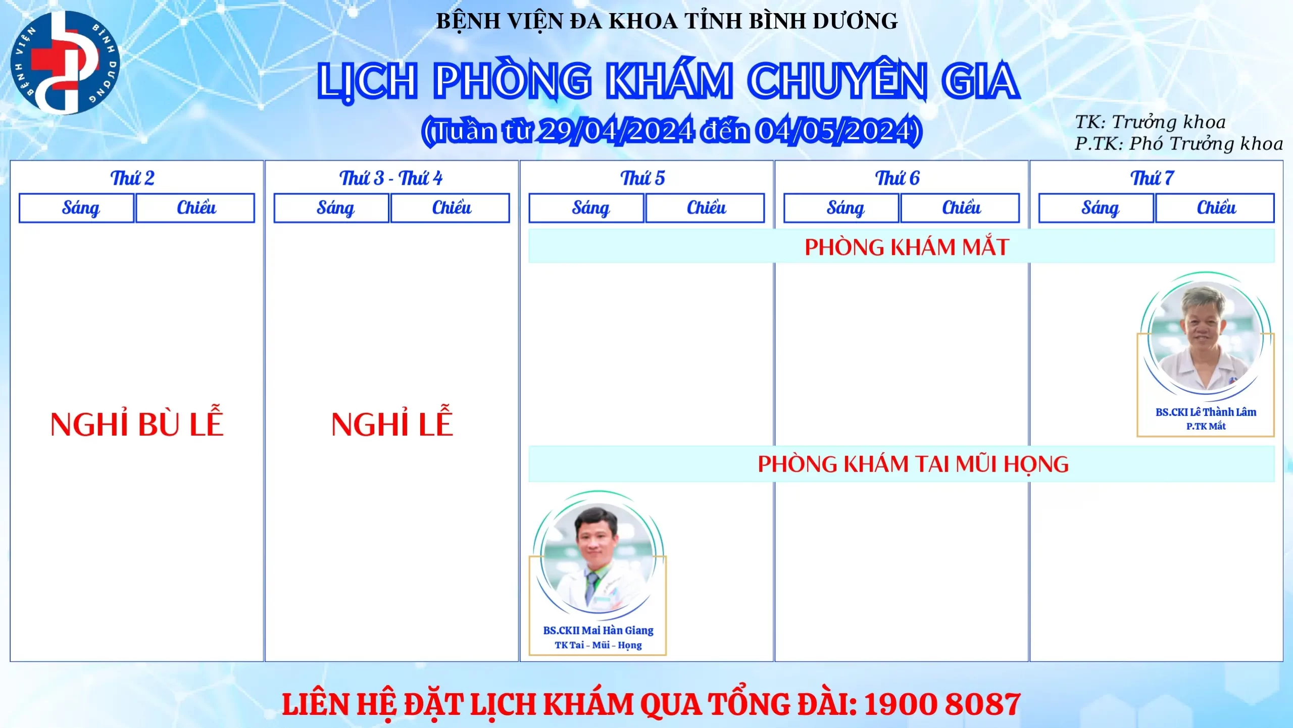 🌟🌟🌟LỊCH PHÒNG KHÁM CHUYÊN GIA BỆNH VIỆN ĐA KHOA TỈNH BÌNH DƯƠNG.