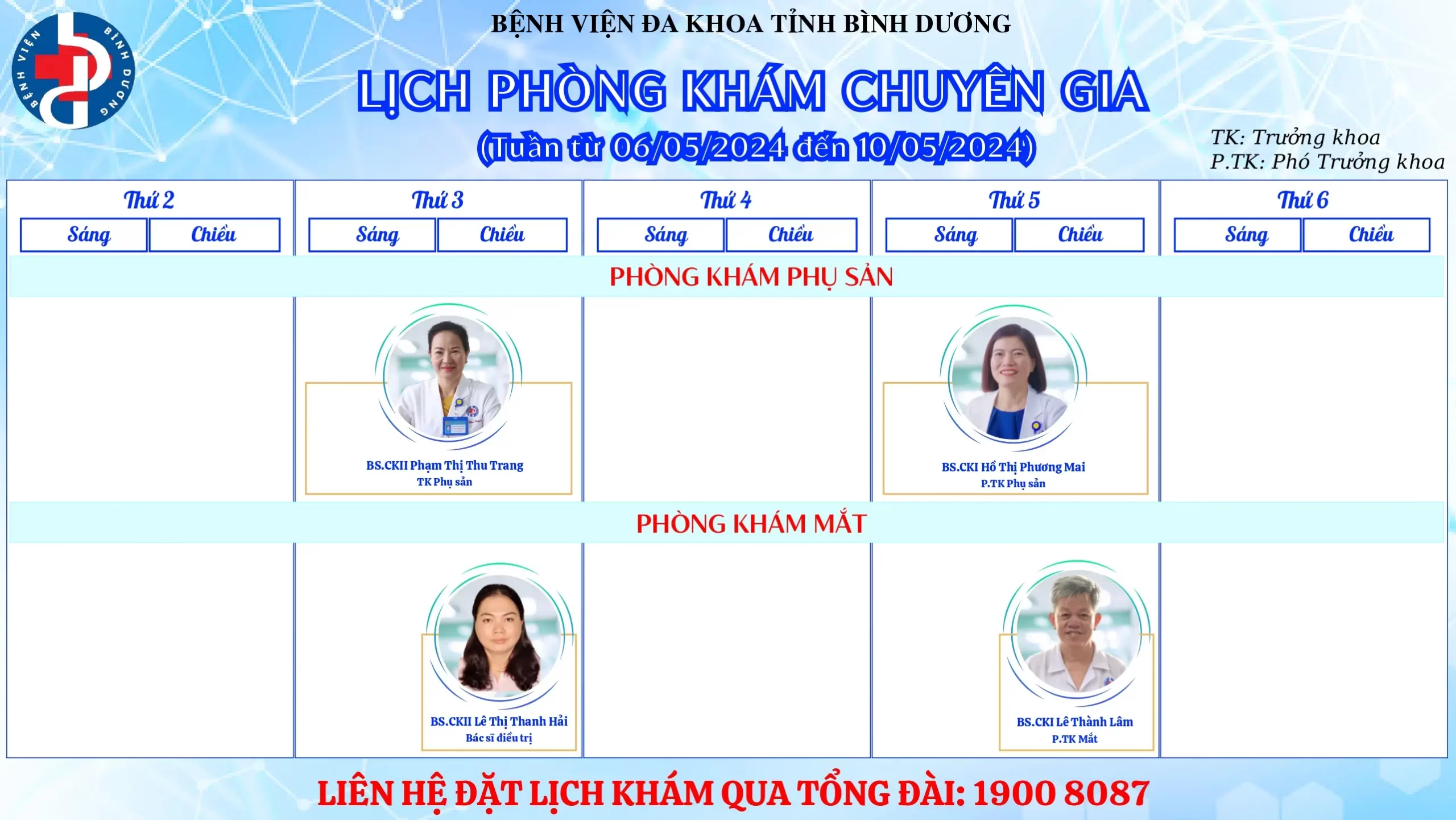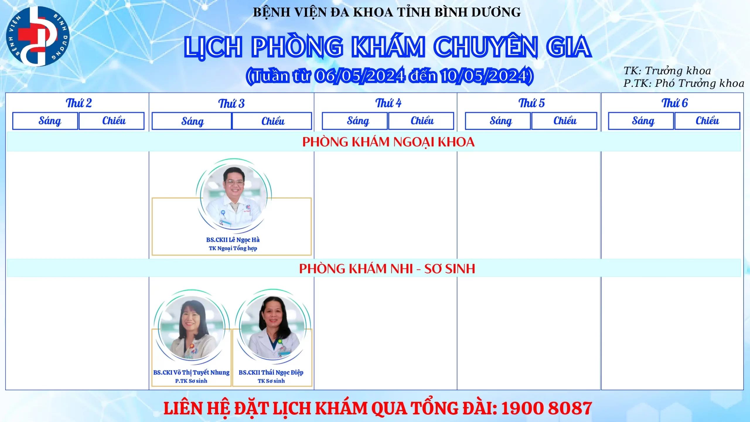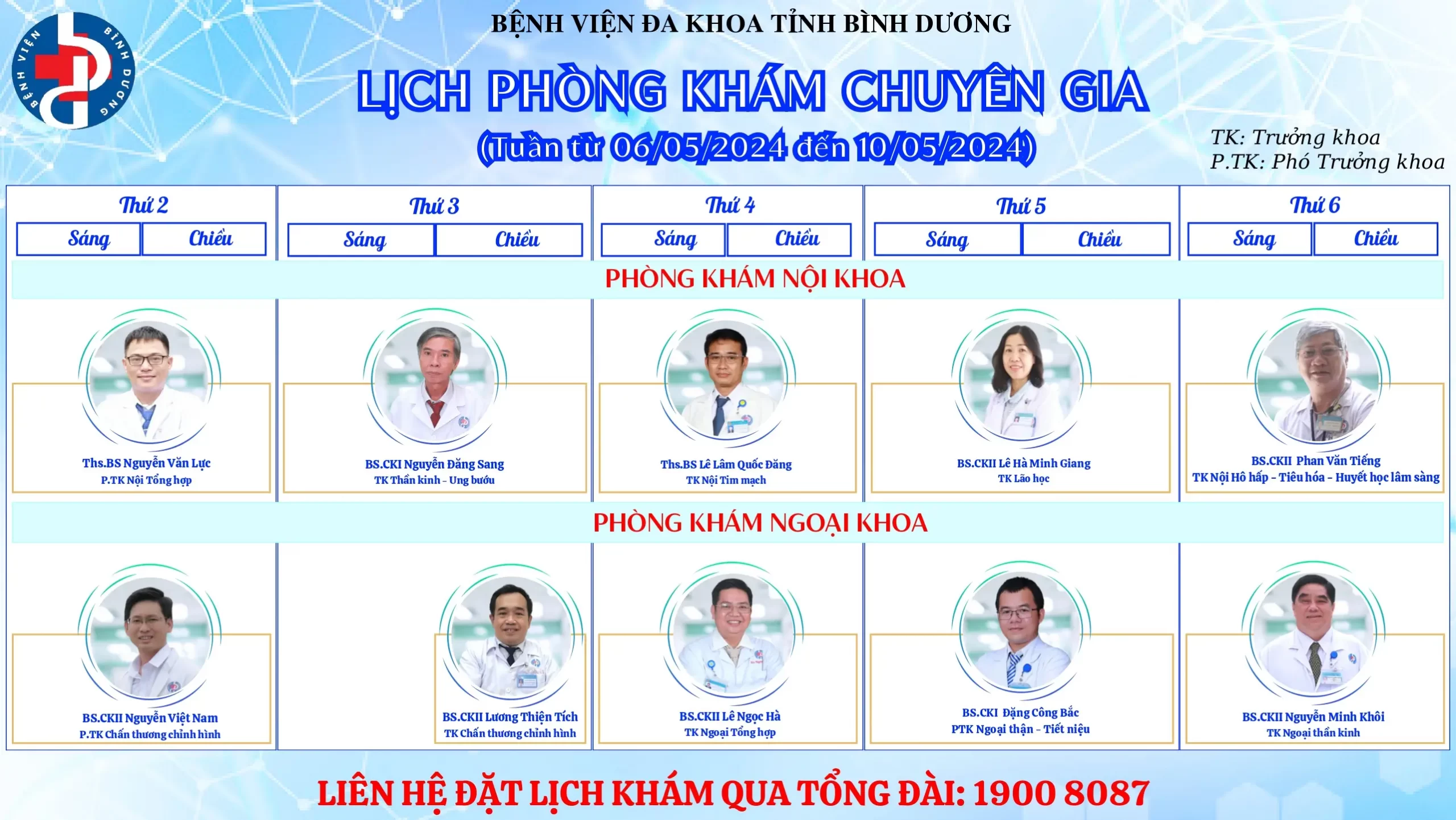 🌟🌟🌟LỊCH PHÒNG KHÁM CHUYÊN GIA BỆNH VIỆN ĐA KHOA TỈNH BÌNH DƯƠNG.