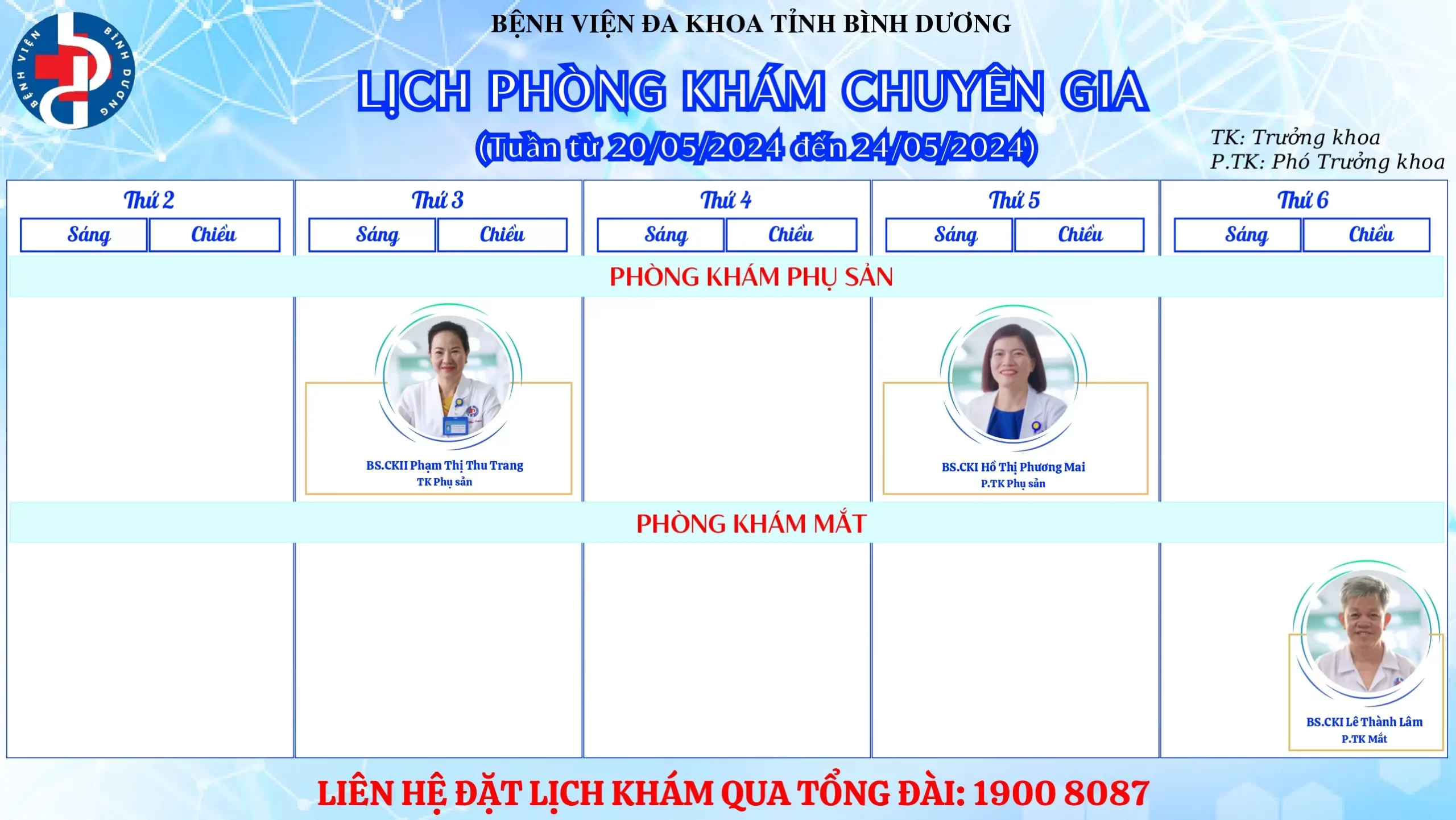🌟🌟🌟LỊCH PHÒNG KHÁM CHUYÊN GIA BỆNH VIỆN ĐA KHOA TỈNH BÌNH DƯƠNG.