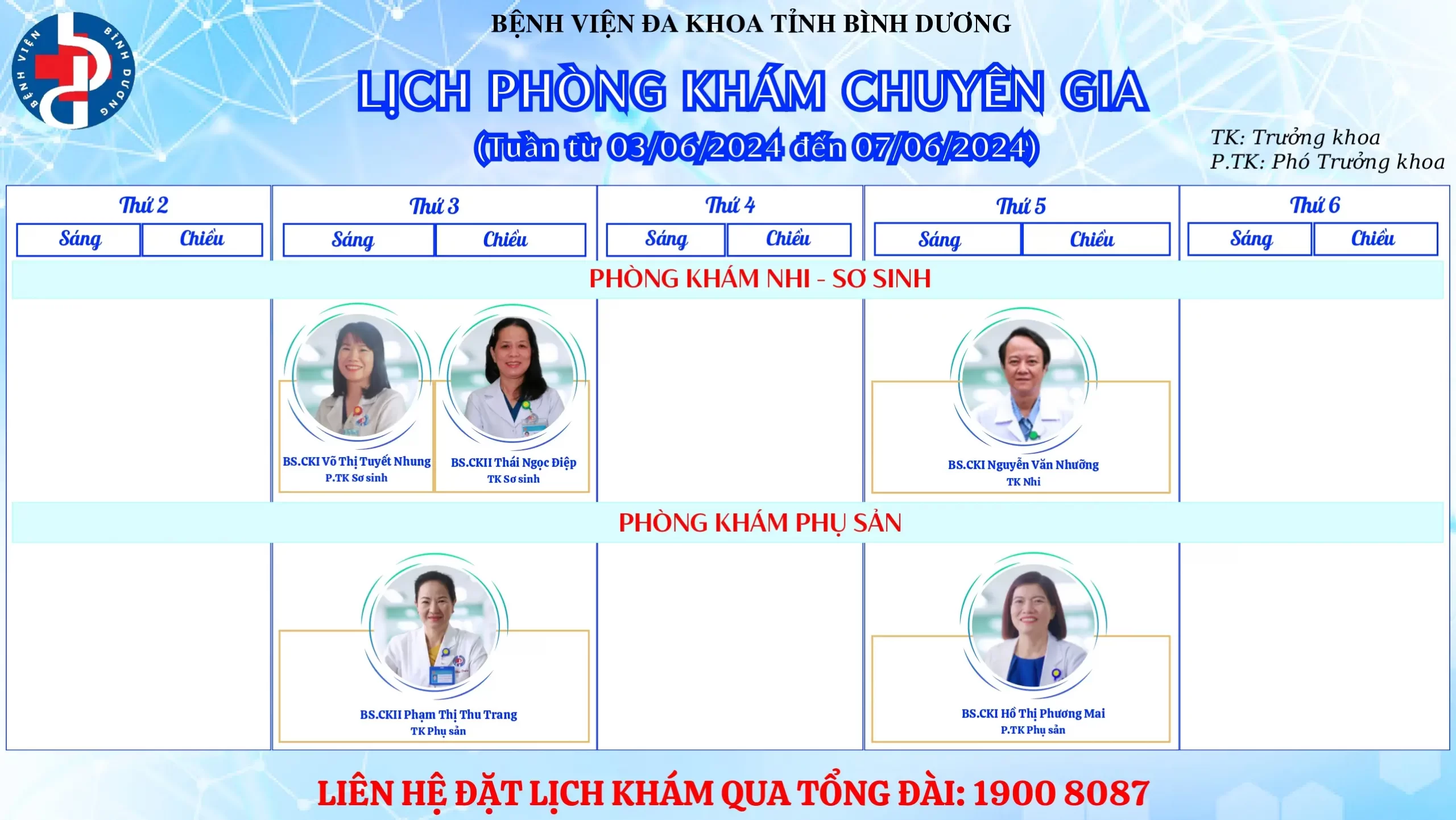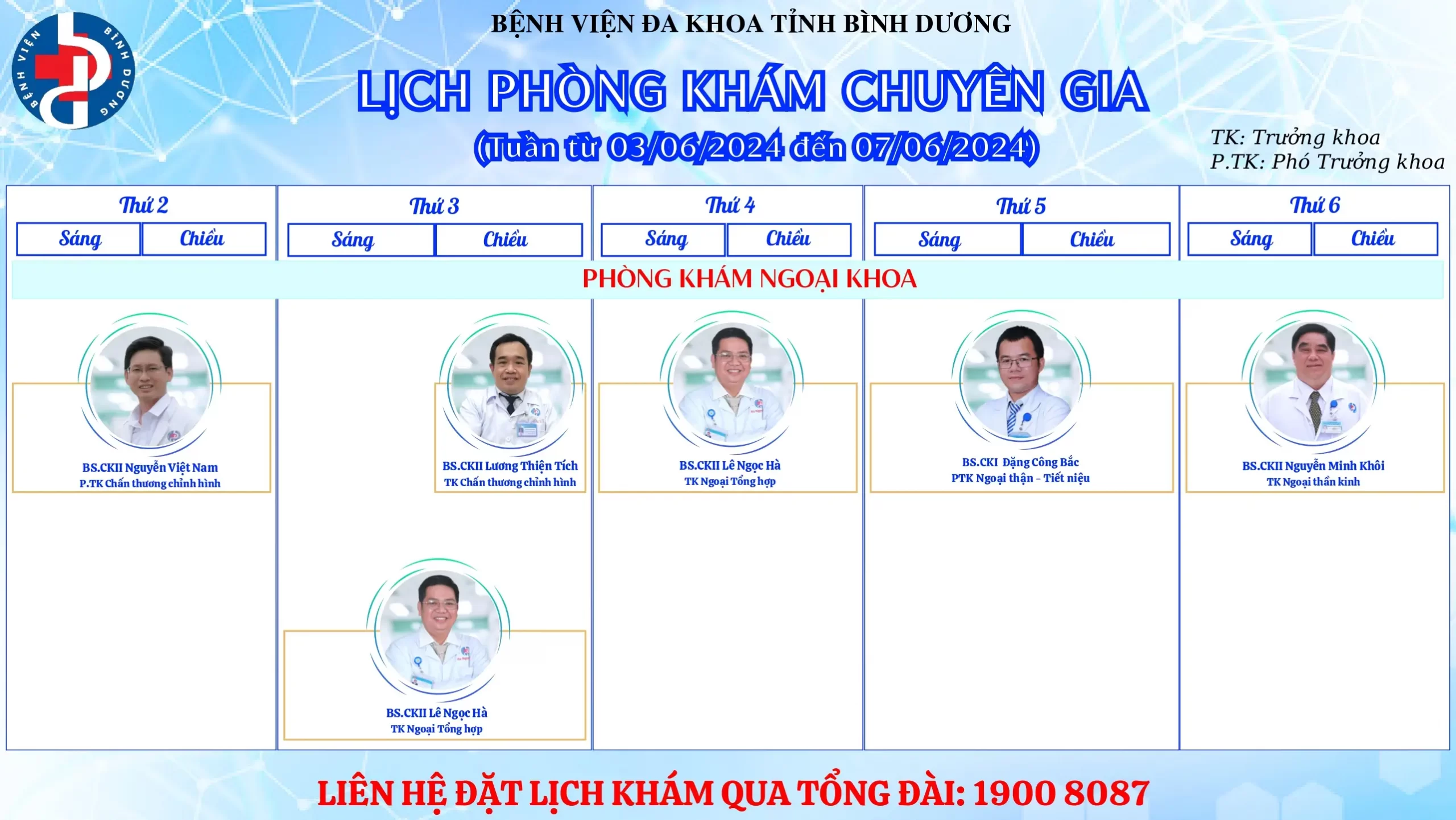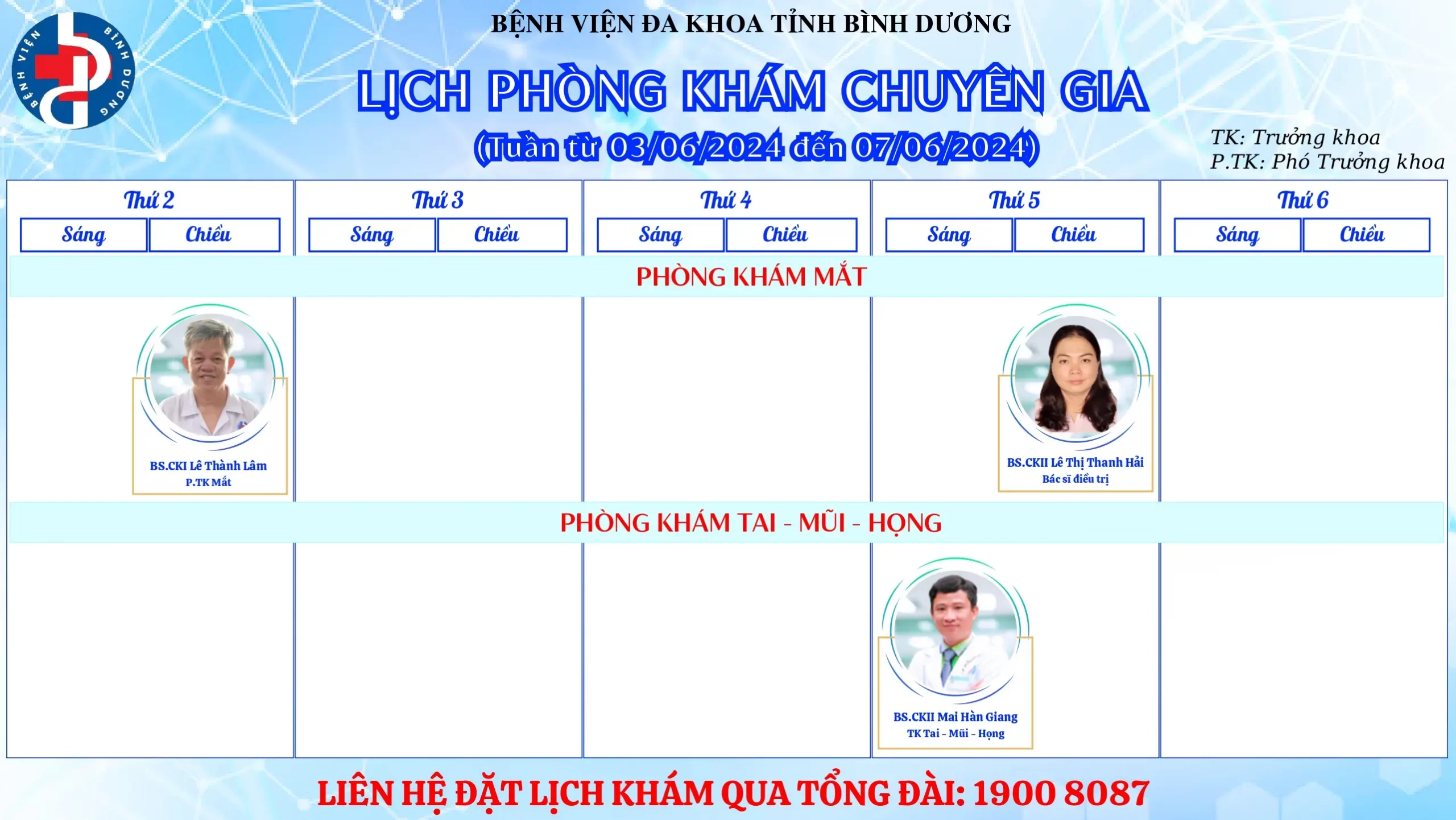 🌟🌟🌟LỊCH PHÒNG KHÁM CHUYÊN GIA BỆNH VIỆN ĐA KHOA TỈNH BÌNH DƯƠNG.