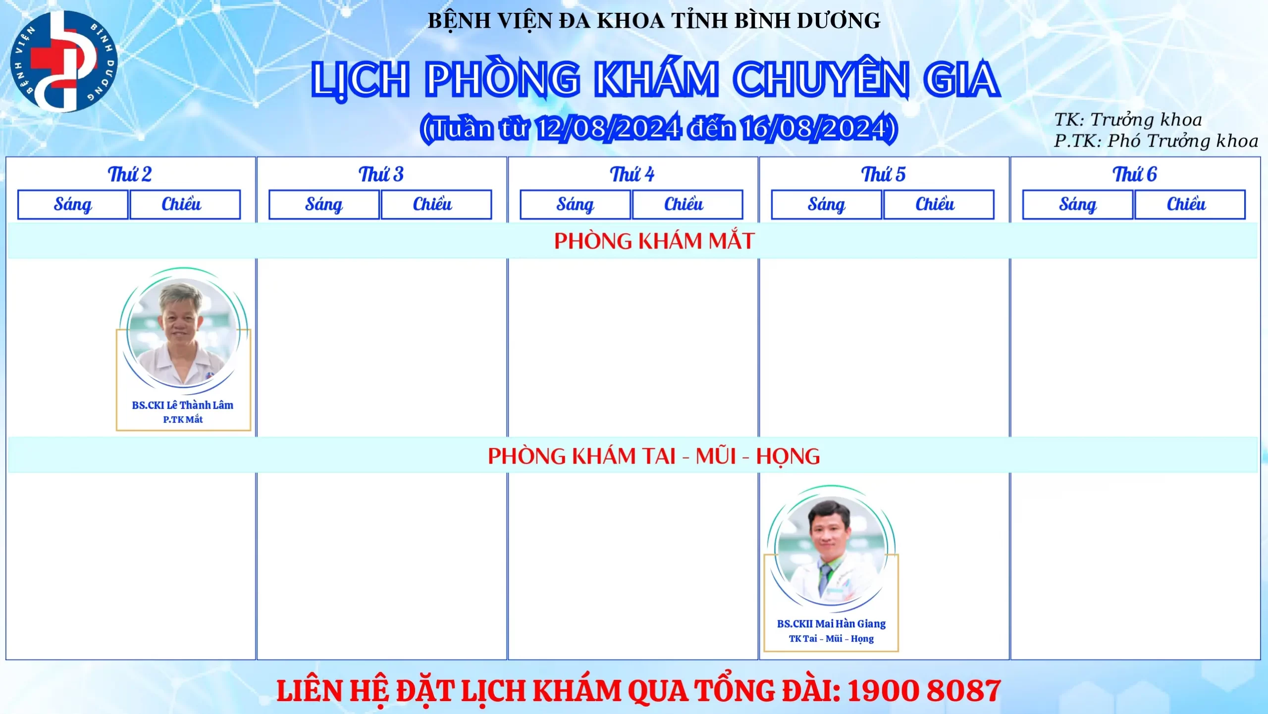 🌟🌟🌟LỊCH PHÒNG KHÁM CHUYÊN GIA BỆNH VIỆN ĐA KHOA TỈNH BÌNH DƯƠNG.