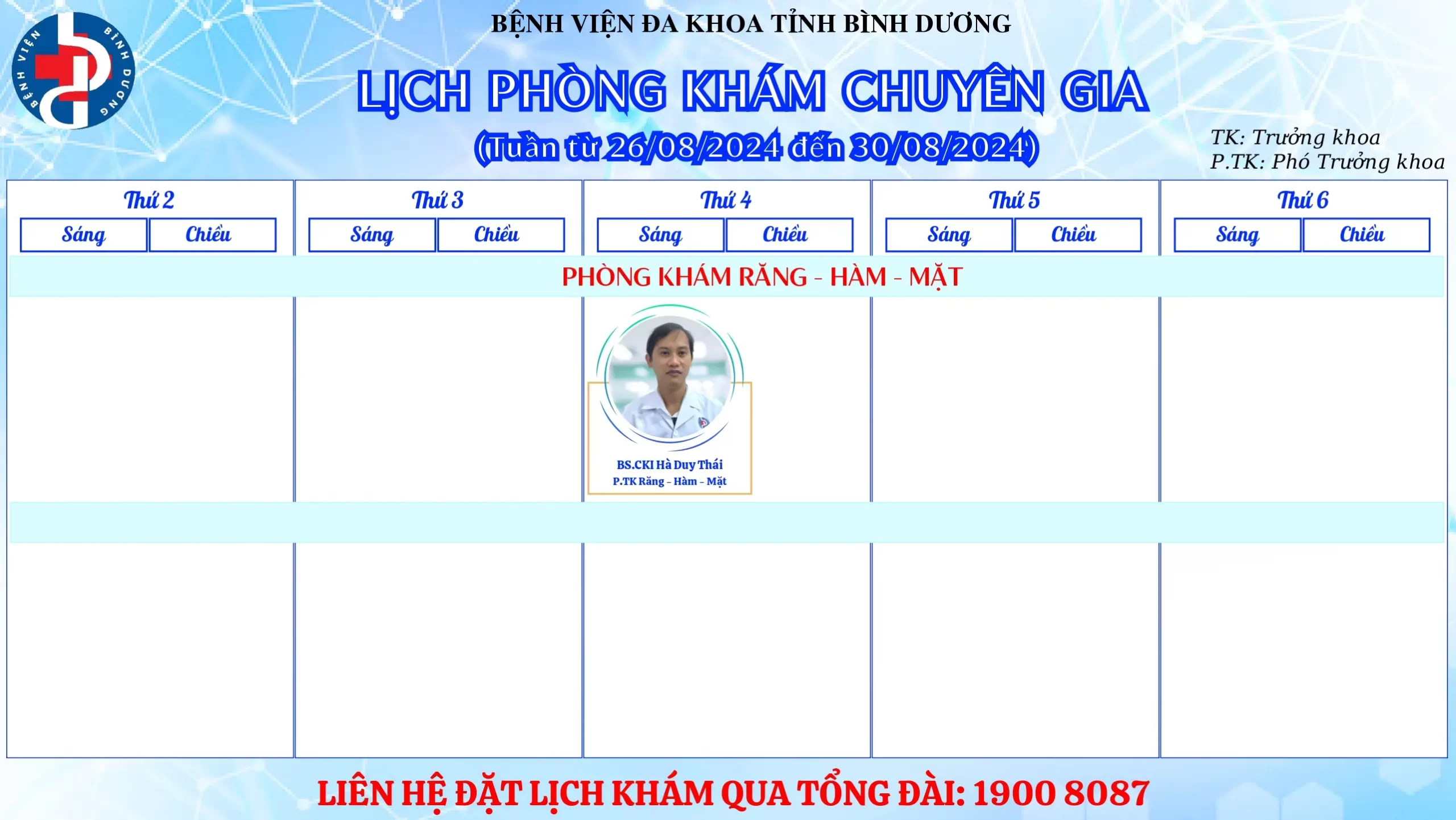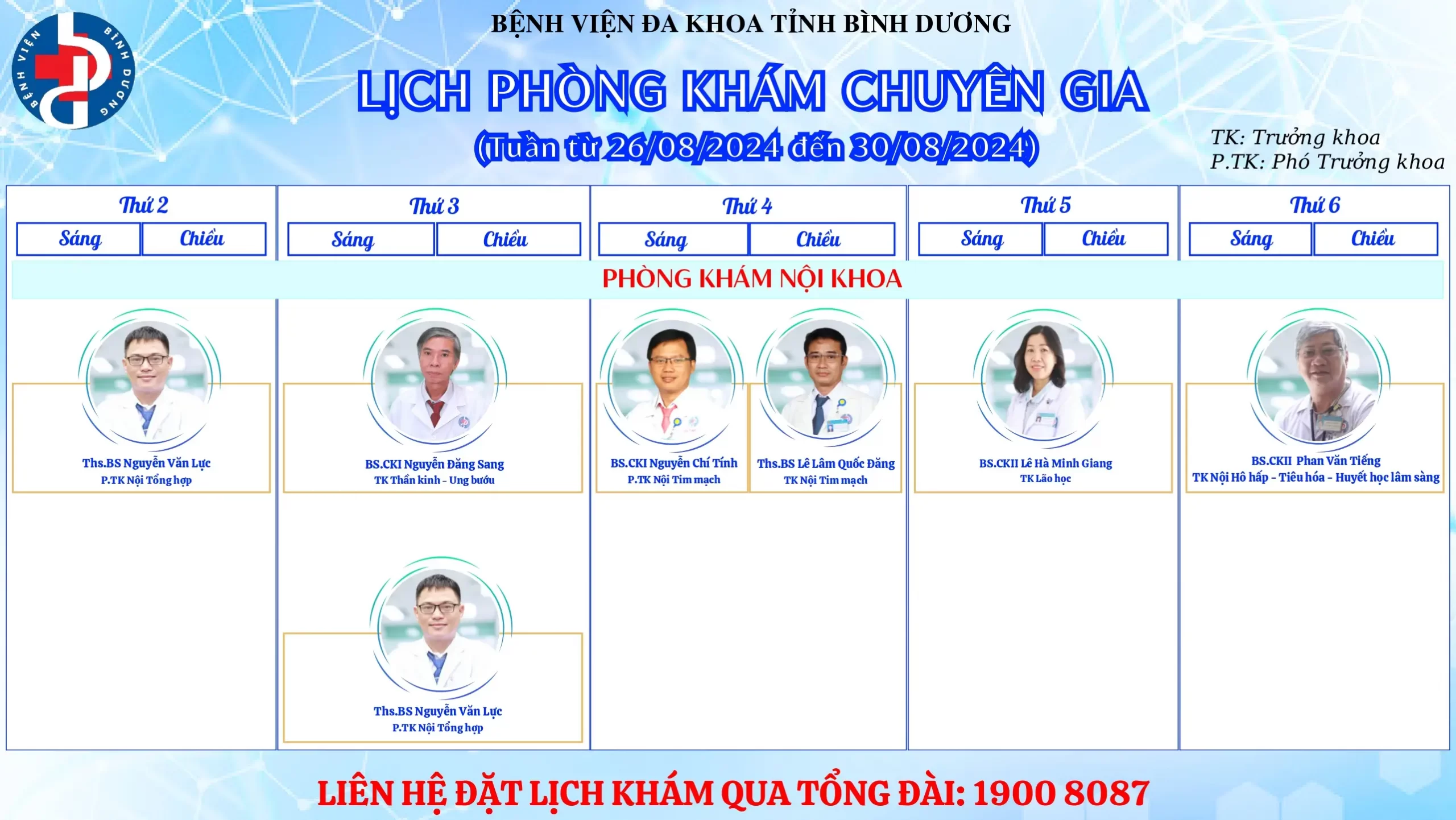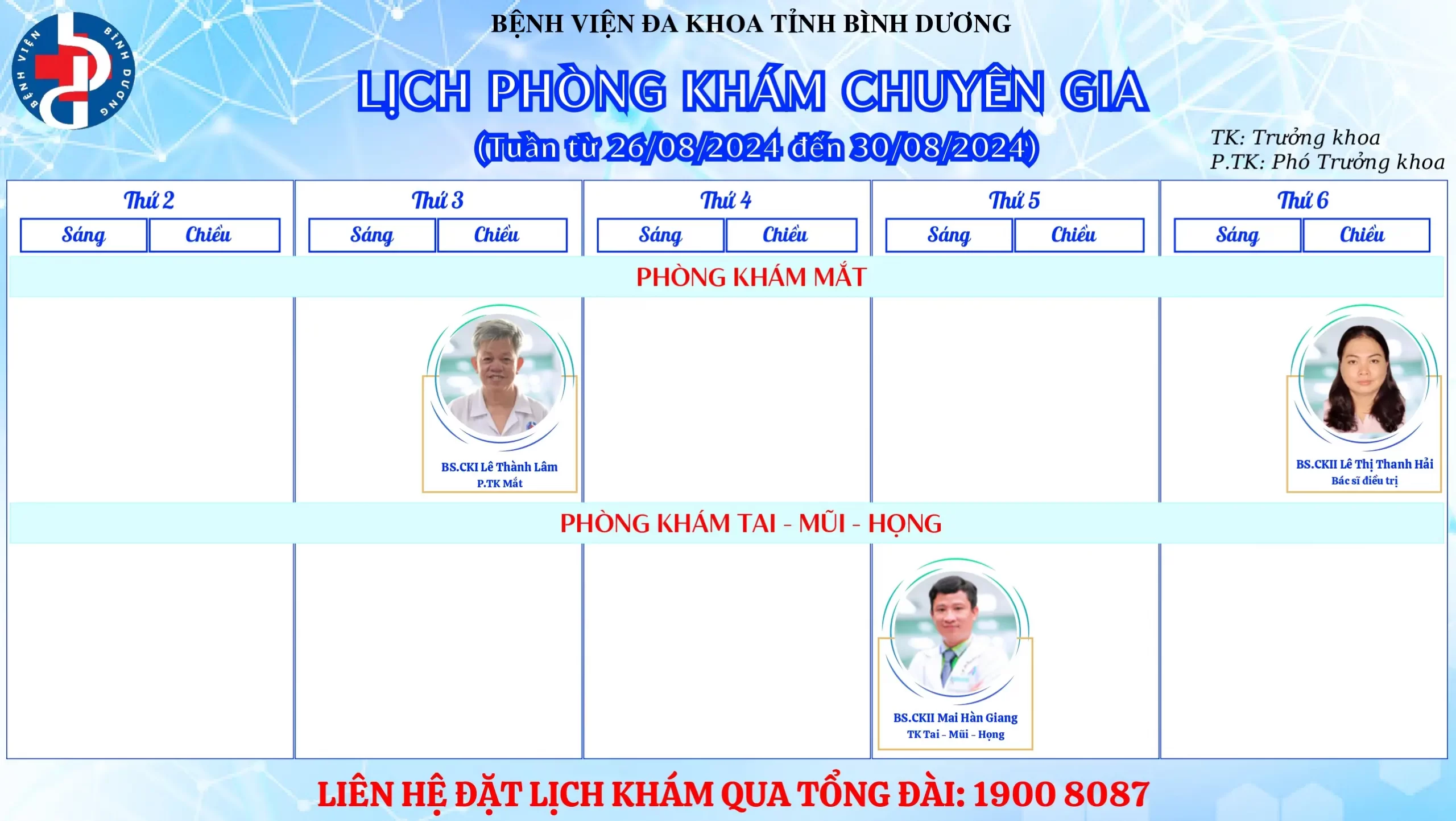 🌟🌟🌟LỊCH PHÒNG KHÁM CHUYÊN GIA BỆNH VIỆN ĐA KHOA TỈNH BÌNH DƯƠNG.