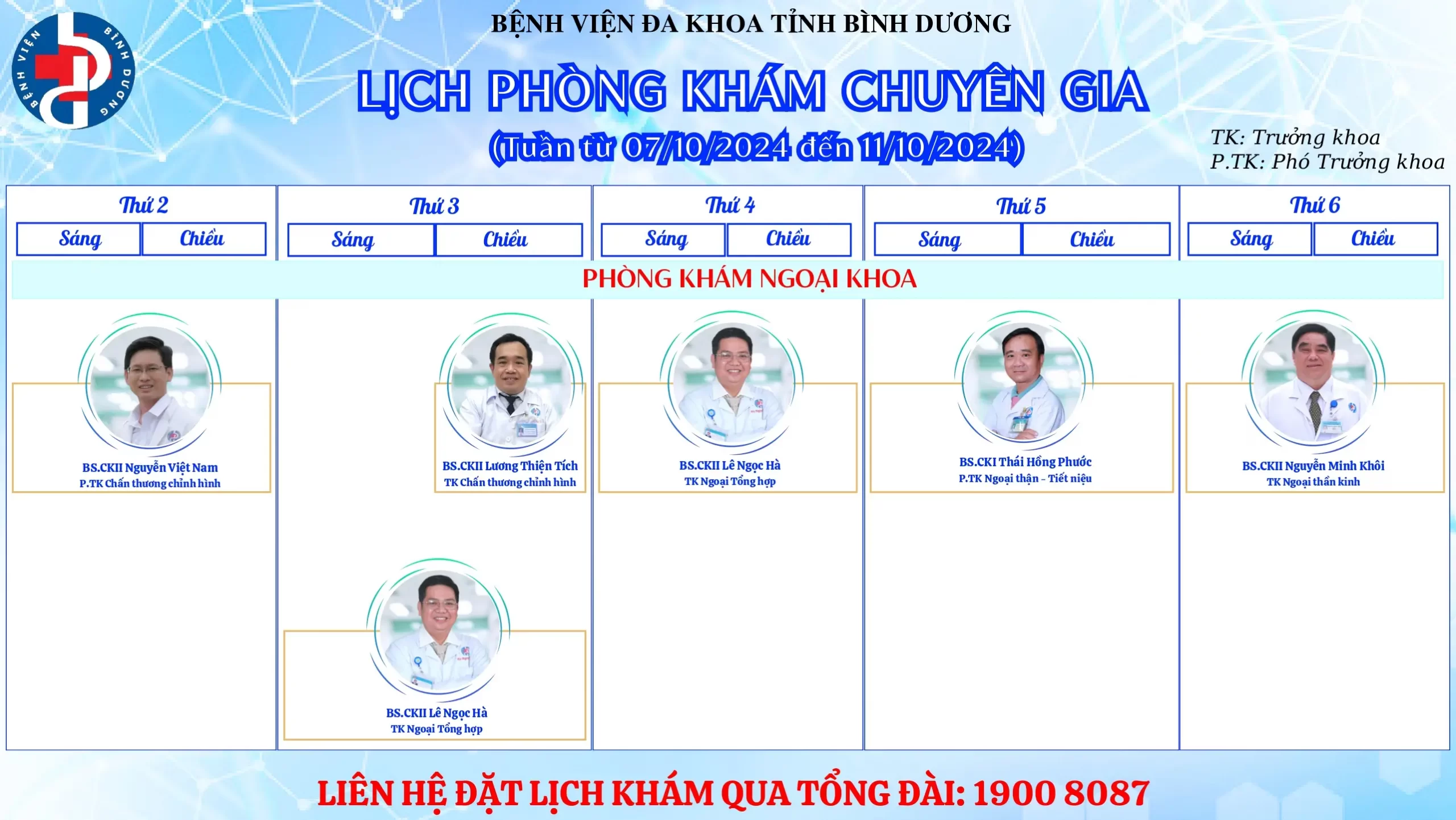 🌟🌟🌟LỊCH PHÒNG KHÁM CHUYÊN GIA BỆNH VIỆN ĐA KHOA TỈNH BÌNH DƯƠNG.