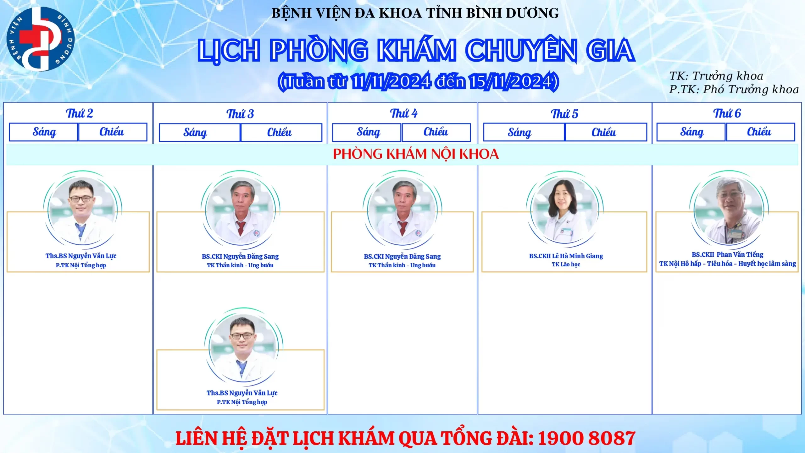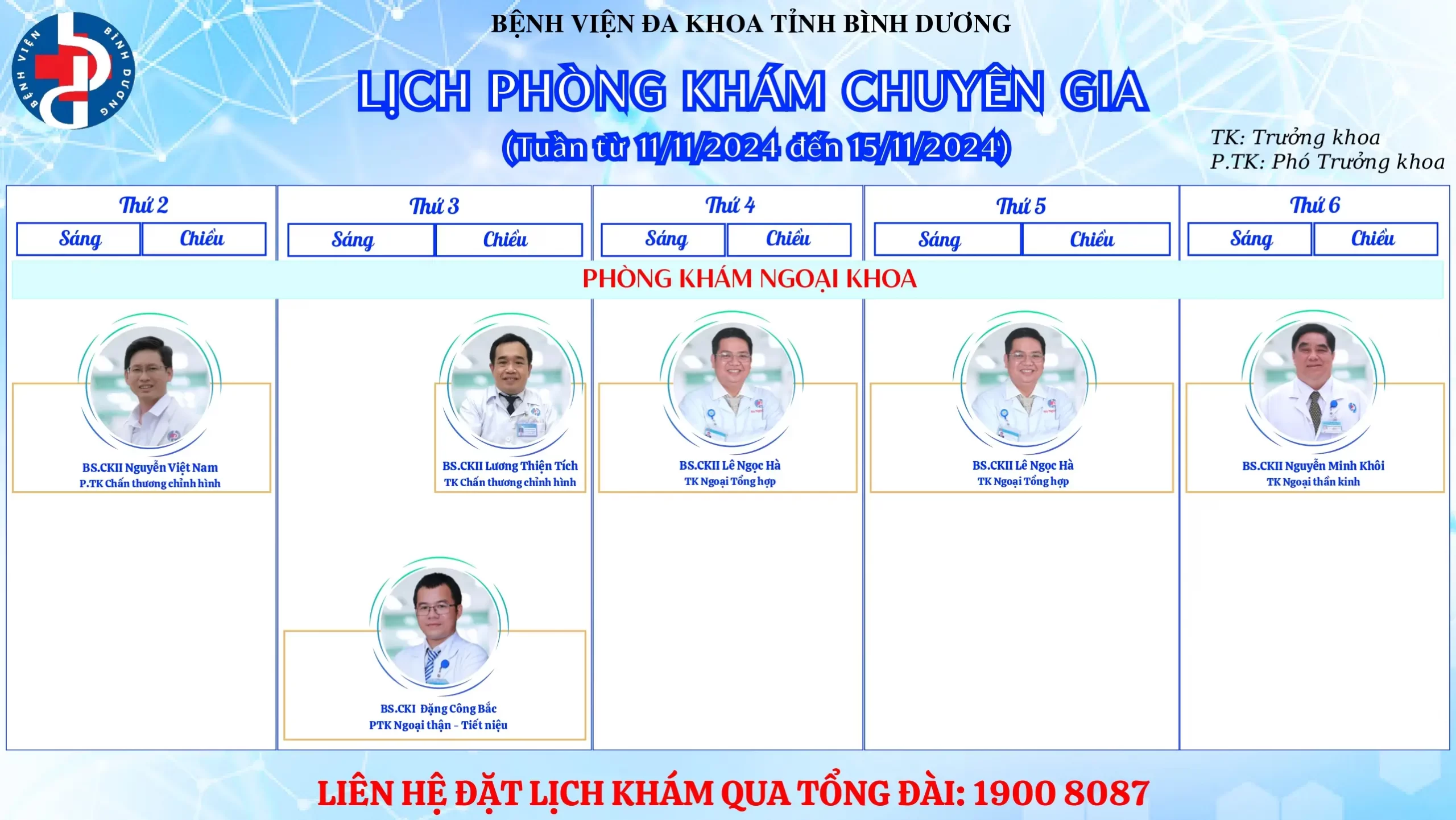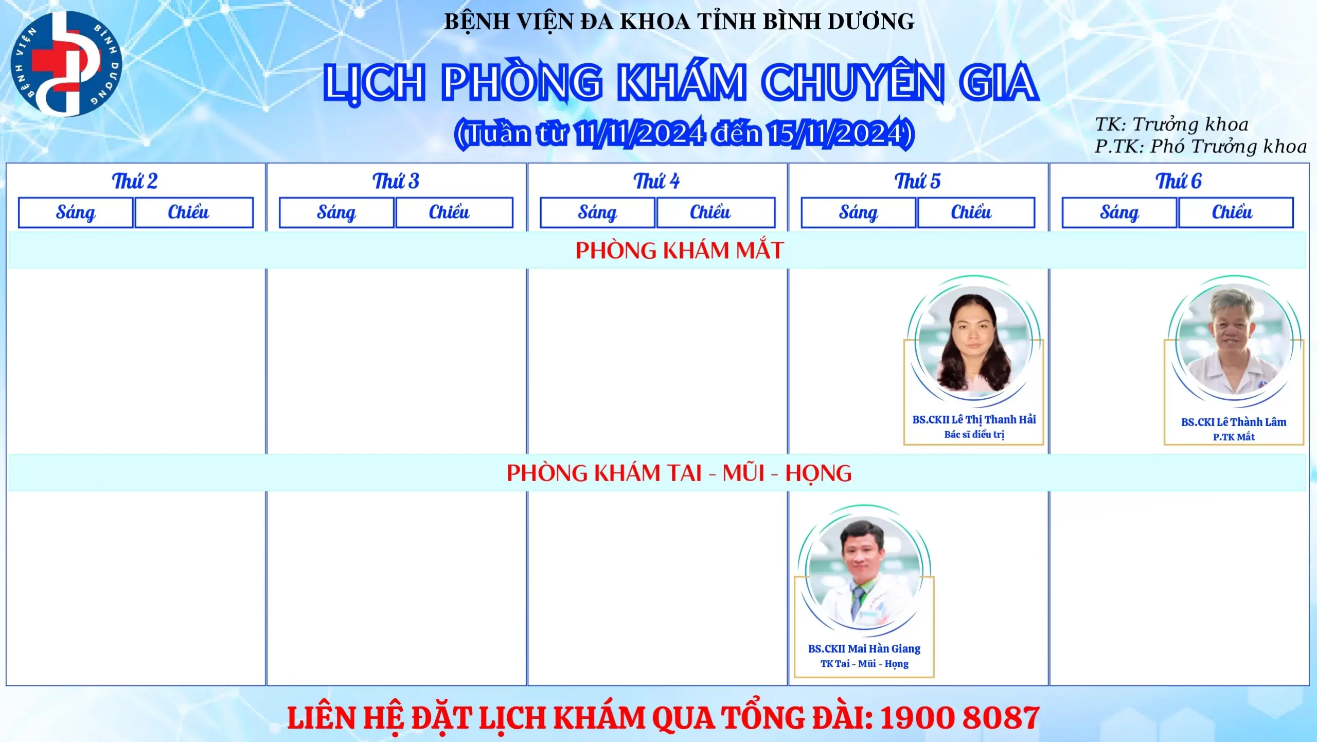 🌟🌟🌟LỊCH PHÒNG KHÁM CHUYÊN GIA BỆNH VIỆN ĐA KHOA TỈNH BÌNH DƯƠNG.