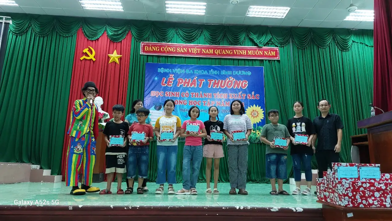 💥💥💥 Nhằm thực hiện tốt công tác chăm lo cho đoàn viên công đoàn và khích lệ tinh thần học tập của con em viên chức, người lao động bệnh viện đã đạt được thành tích cao trong năm 2024. Chiều ngày 08/08/2024, Công đoàn cơ sở và Đoàn cơ sở Bệnh viện Đa khoa tỉnh Bình Dương đã tổ chức chương trình “Lễ phát thưởng cho học sinh có thành tích xuất sắc trong học tập năm 2024”.