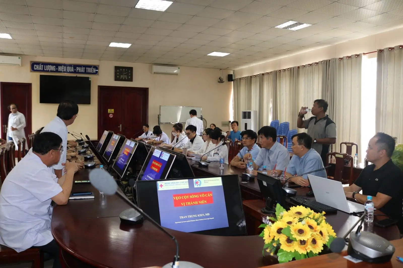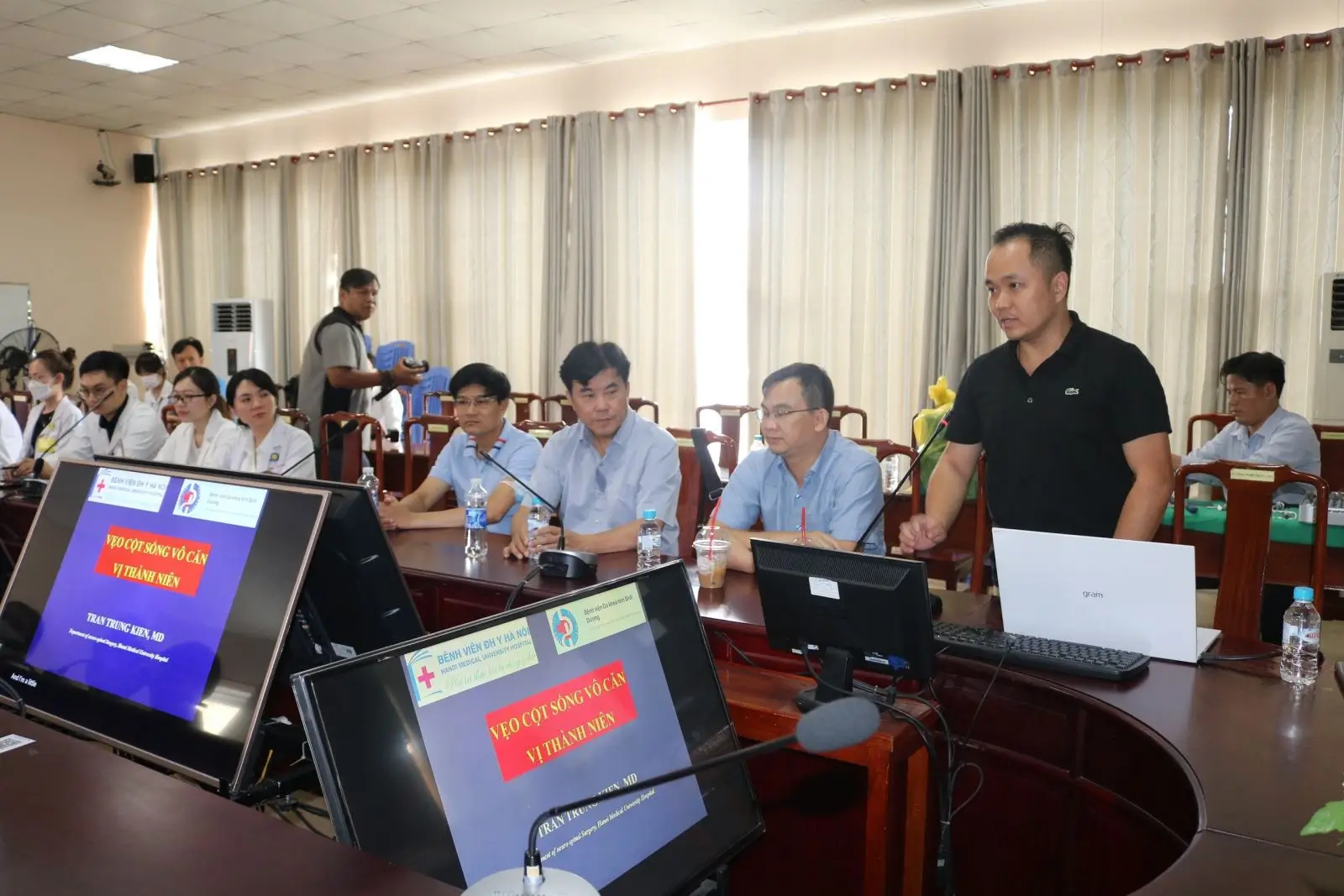🔹Nhằm nâng cao kỹ năng, kiến thức và năng lực của bác sĩ trong lĩnh vực khám tầm soát bệnh lý cột sống bẩm sinh. Vừa qua, Bệnh viện Đa khoa tỉnh Bình Dương đã có buổi tập huấn về “ Khám tầm soát bệnh lý cột sống bẩm sinh, Hướng dẫn kỹ năng thực hiện kỹ thuật chụp X-quang cột sống toàn thân ”.