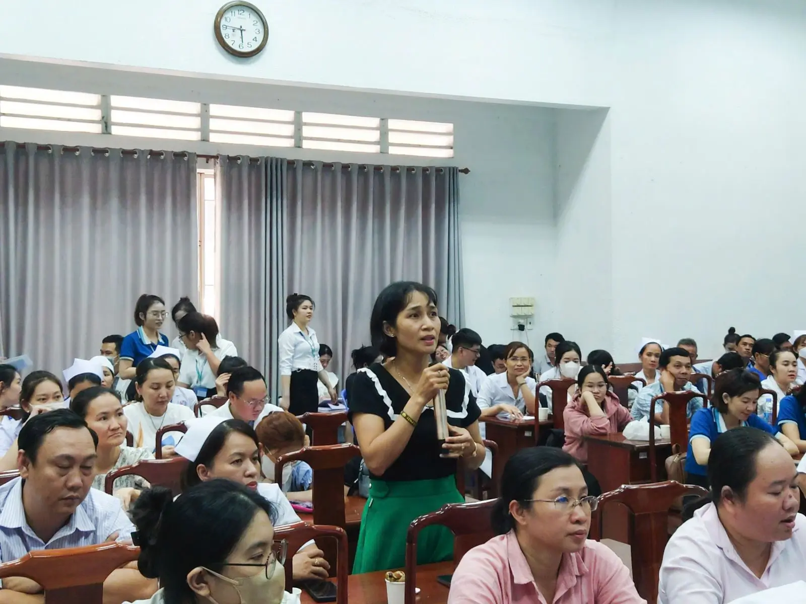 Buổi tập huấn đã diễn ra trong không khí thân mật và sôi nổi, BS.CKII Đỗ Quốc Thiên Hương đã đưa ra những vấn đề, tình huống giao tiếp ứng xử xảy ra trong thực tế tại Bệnh viện để các nhân viên y tế cùng thảo luận, thống nhất cách thức ứng xử phù hợp, đồng thời trao đổi, chia sẻ những kinh nghiệm của bản thân trong việc thực hiện giao tiếp. Từ đó bổ sung thêm nhiều kiến thức, kinh nghiệm giúp điều chỉnh hành vi, thái độ ứng xử hướng tới sự chuyên nghiệp, đem lại sự tin cậy, hợp tác từ phía người bệnh, người nhà người bệnh góp phần nâng cao hiệu quả trong khám và điều trị bệnh.