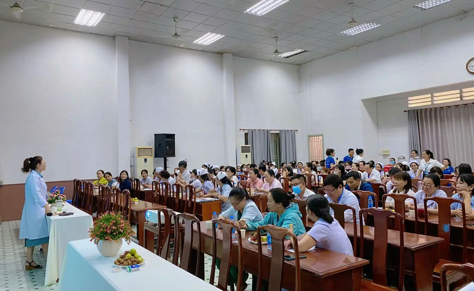 Tham dự chương trình có BS.CKII Đỗ Quốc Thiên Hương – Phó Giám đốc Bệnh viện; BS.CKII Biện Công Trường – Chủ tịch Công Đoàn Bệnh viện; cùng hơn 180 trưởng/phó các khoa phòng, nhân viên y tế đang công tác tại Bệnh viện.