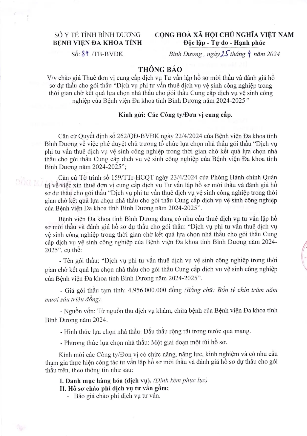 📣📣📣 THÔNG BÁO CHÀO GIÁ ( 84/TB-BVĐK)