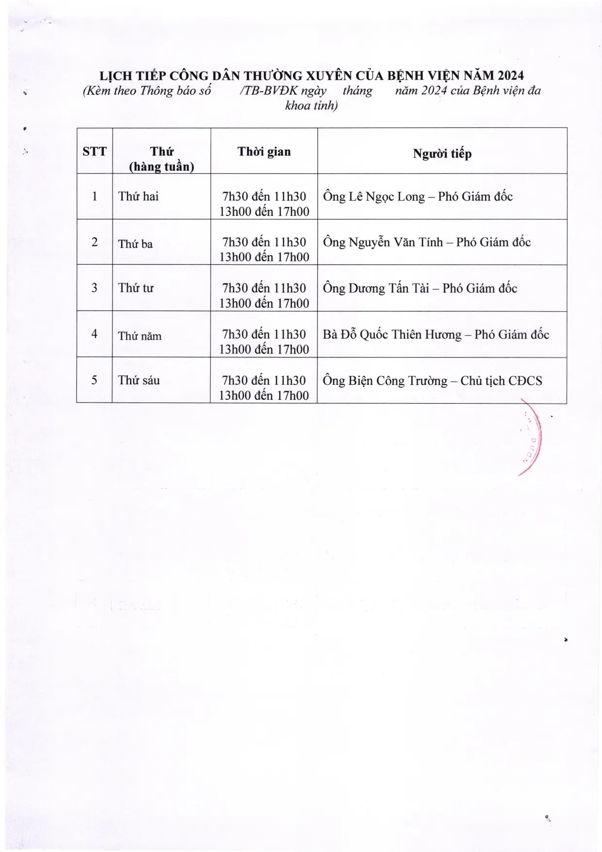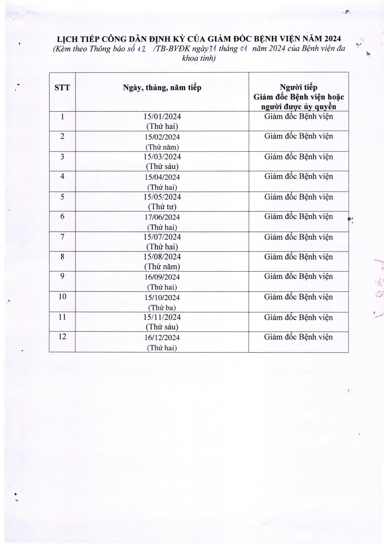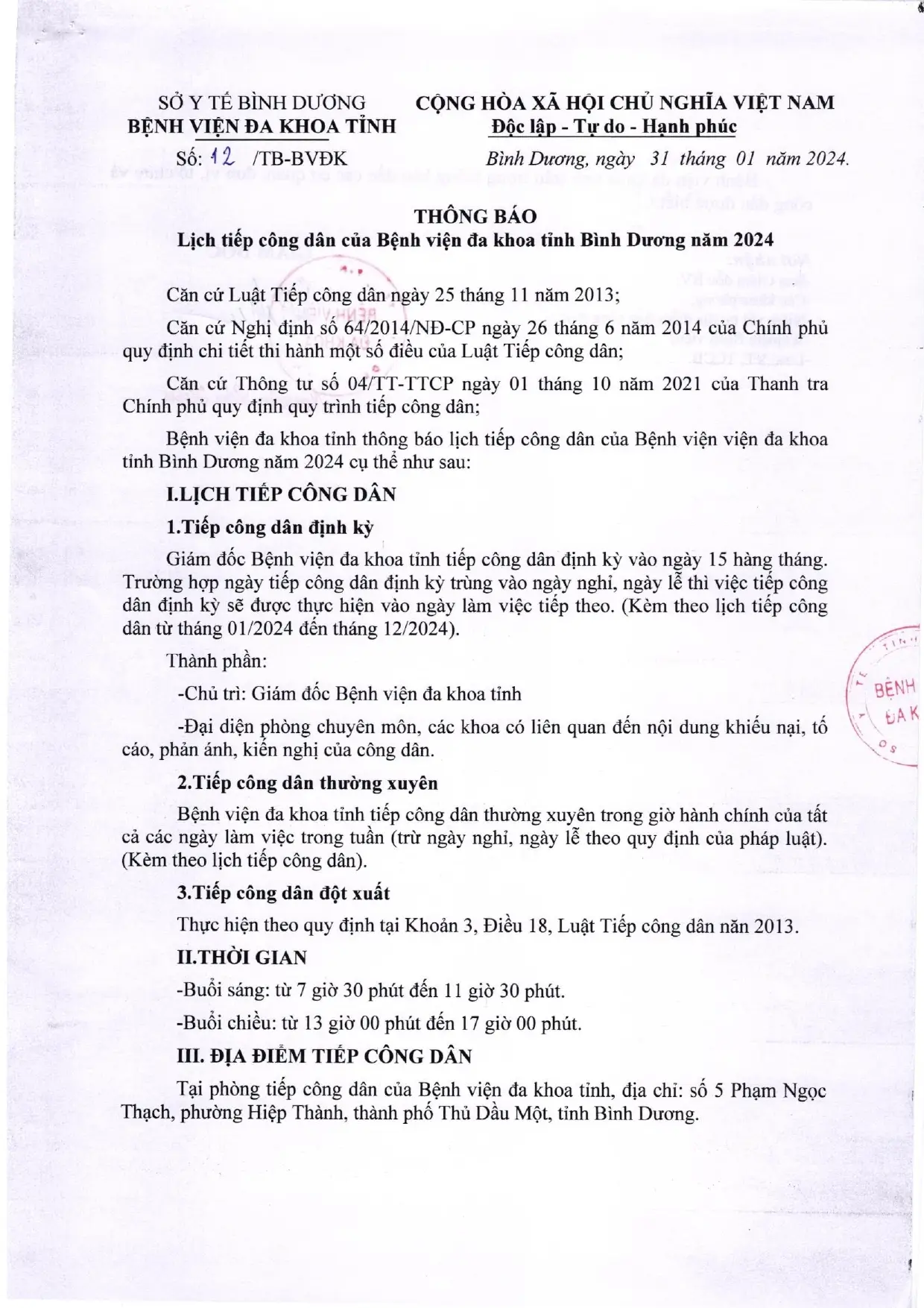 📣📣📣 THÔNG BÁO LỊCH TIẾP CÔNG DÂN NĂM 2024