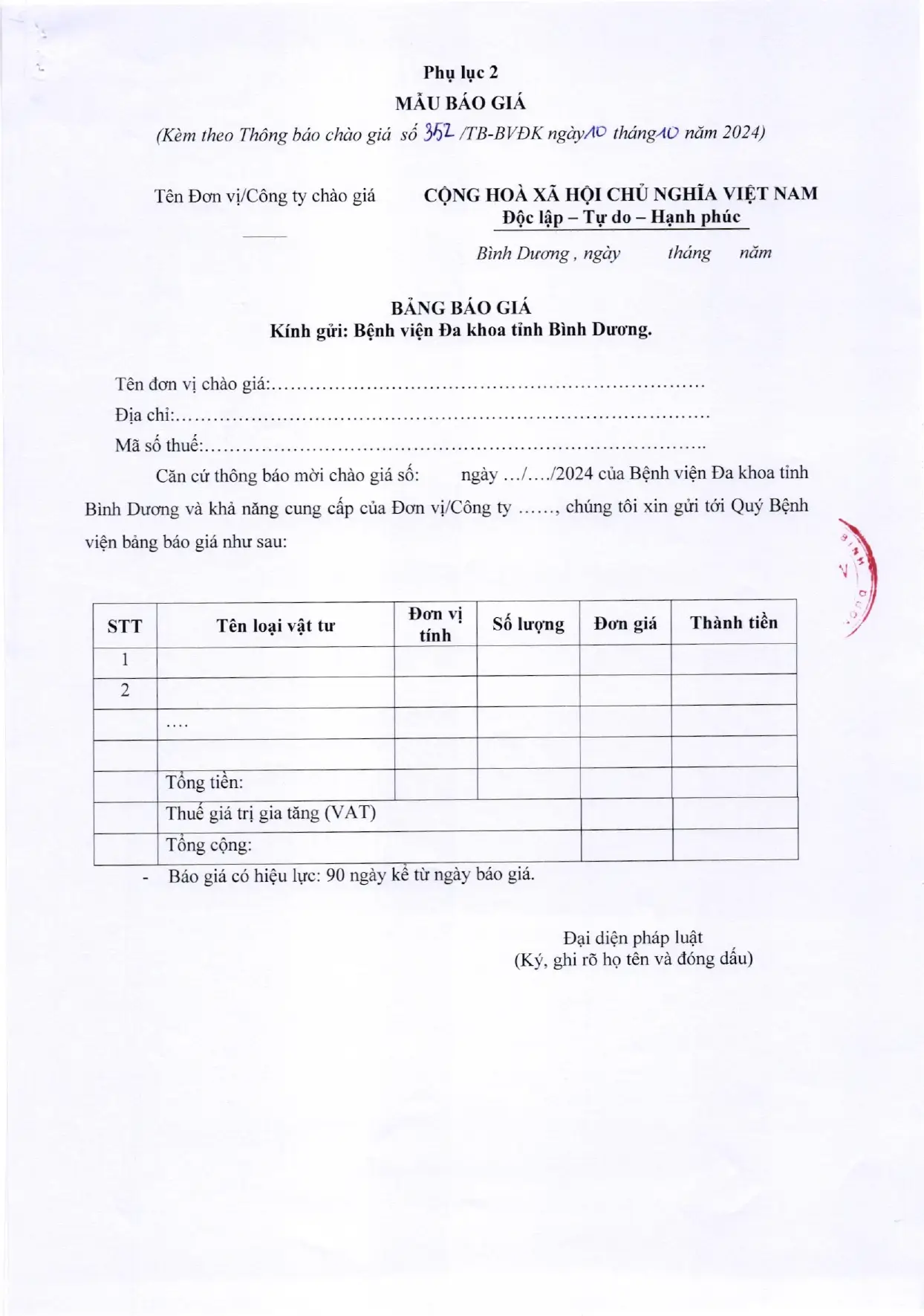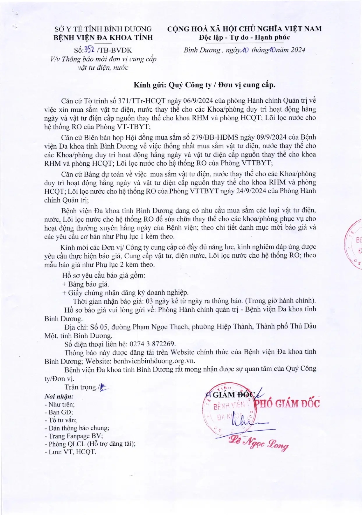 📣📣📣 THÔNG BÁO MỜI CHÀO ĐƠN VỊ (352/TB-BVĐK)
