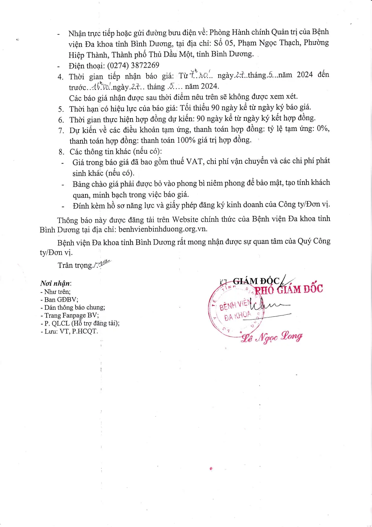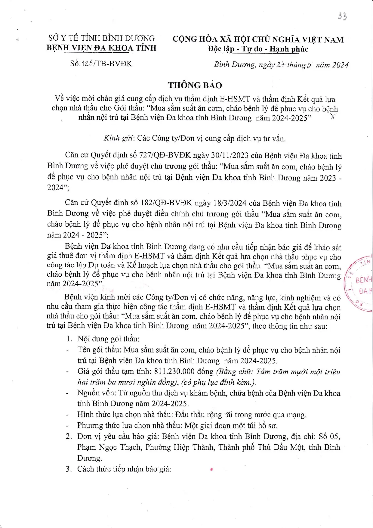 📣📣📣 THÔNG BÁO MỜI CHÀO GIÁ ( 126/TB-BVĐK)