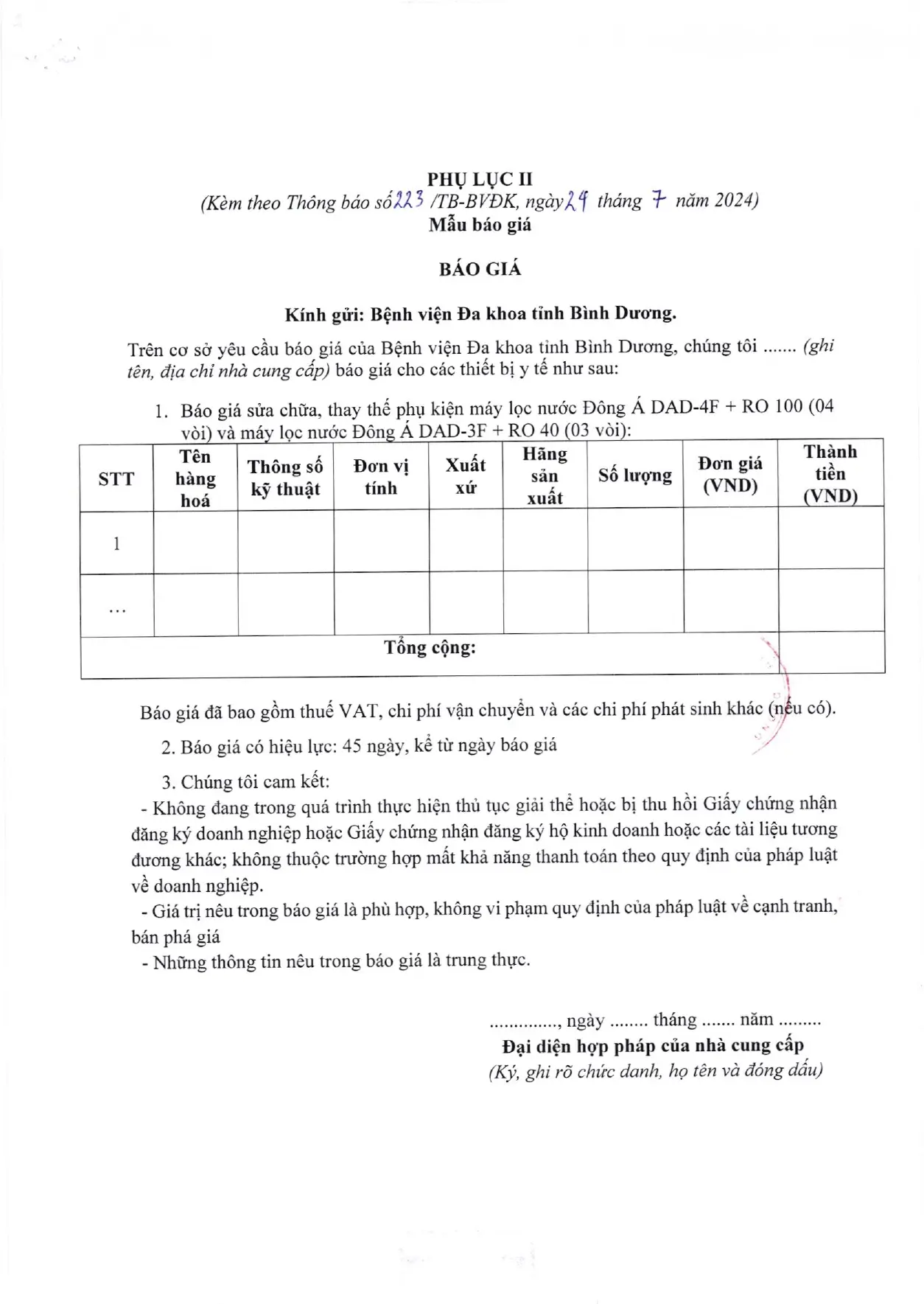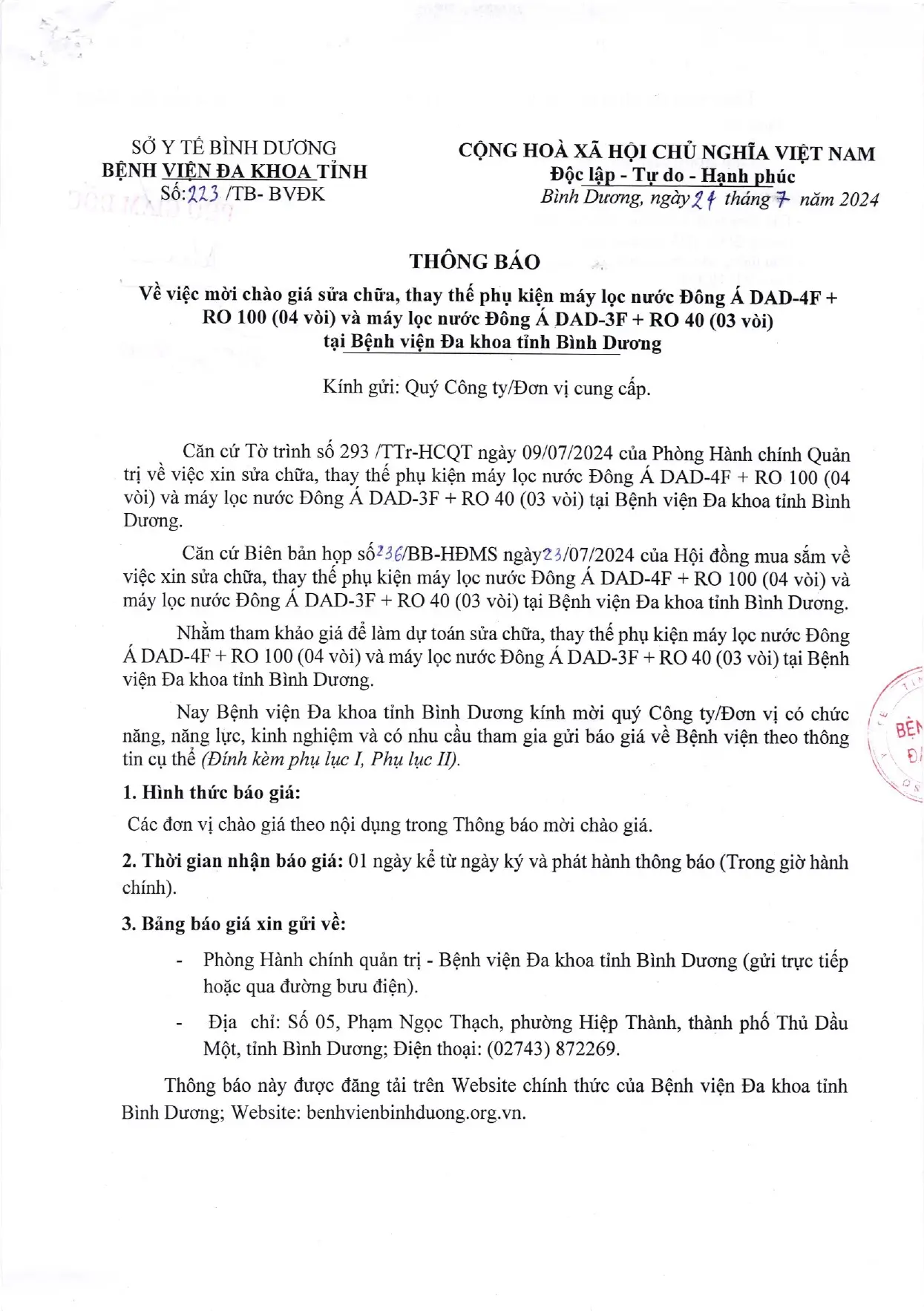 📣📣📣 THÔNG BÁO MỜI CHÀO GIÁ (223/TB-BVĐK)