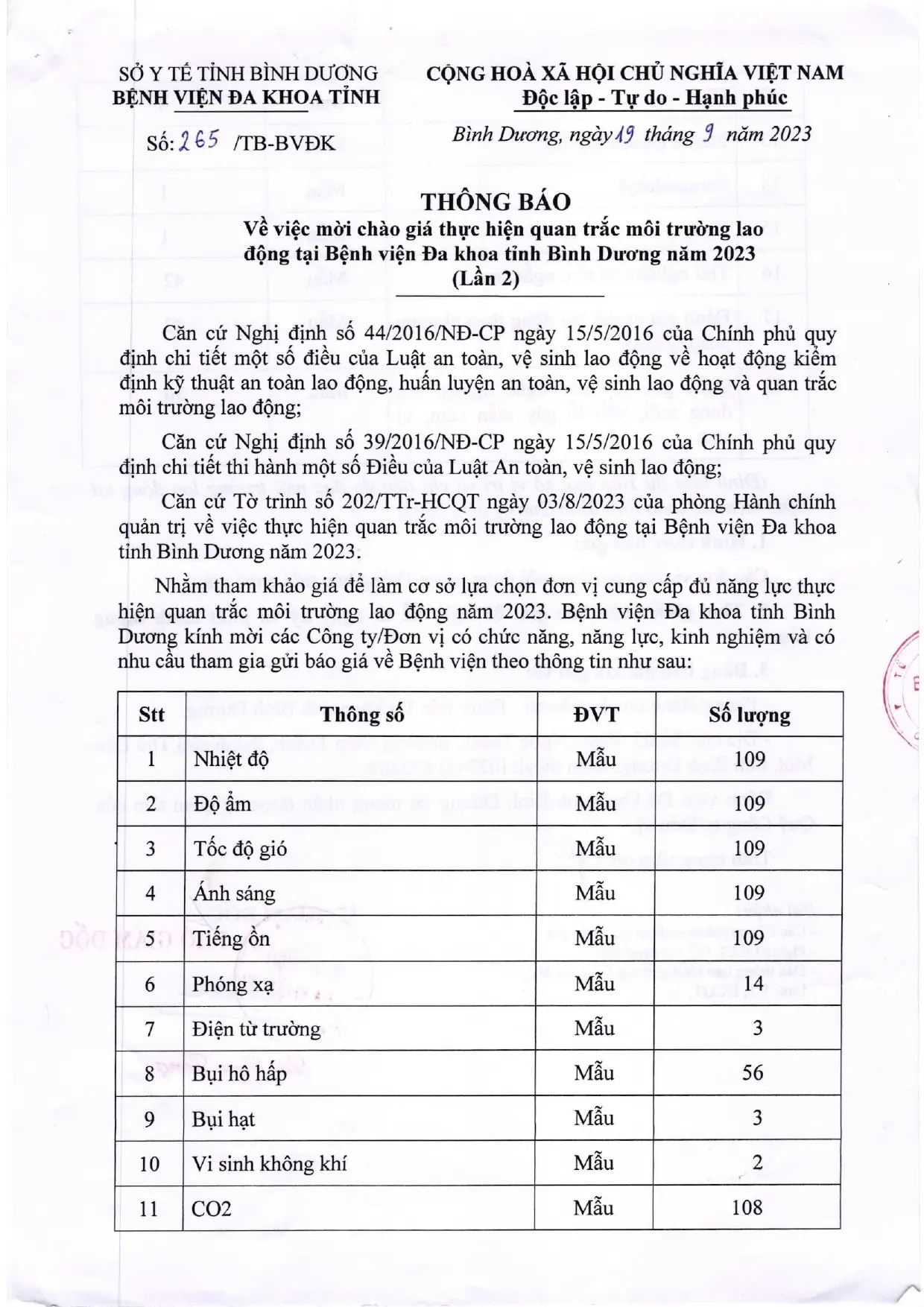 📣📣📣 THÔNG BÁO MỜI CHÀO GIÁ (265/TB-BVĐK)
