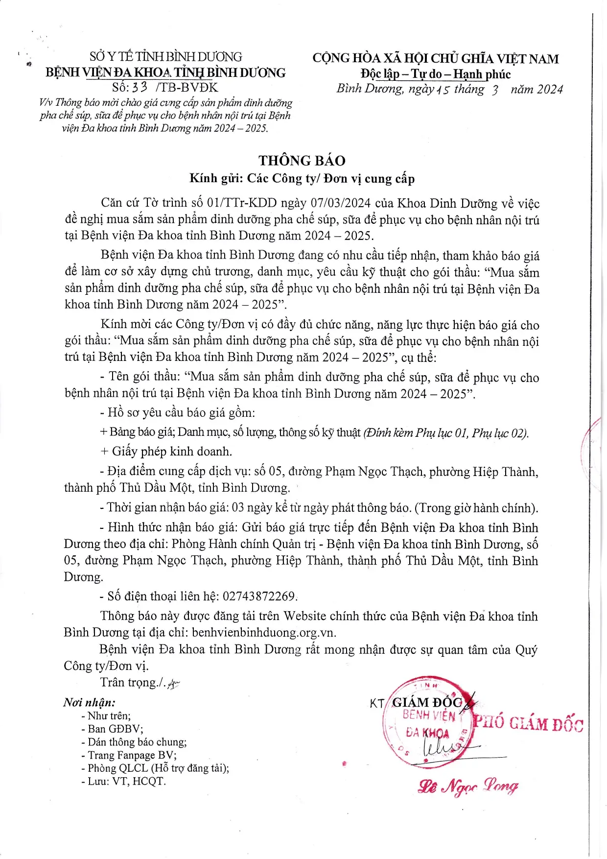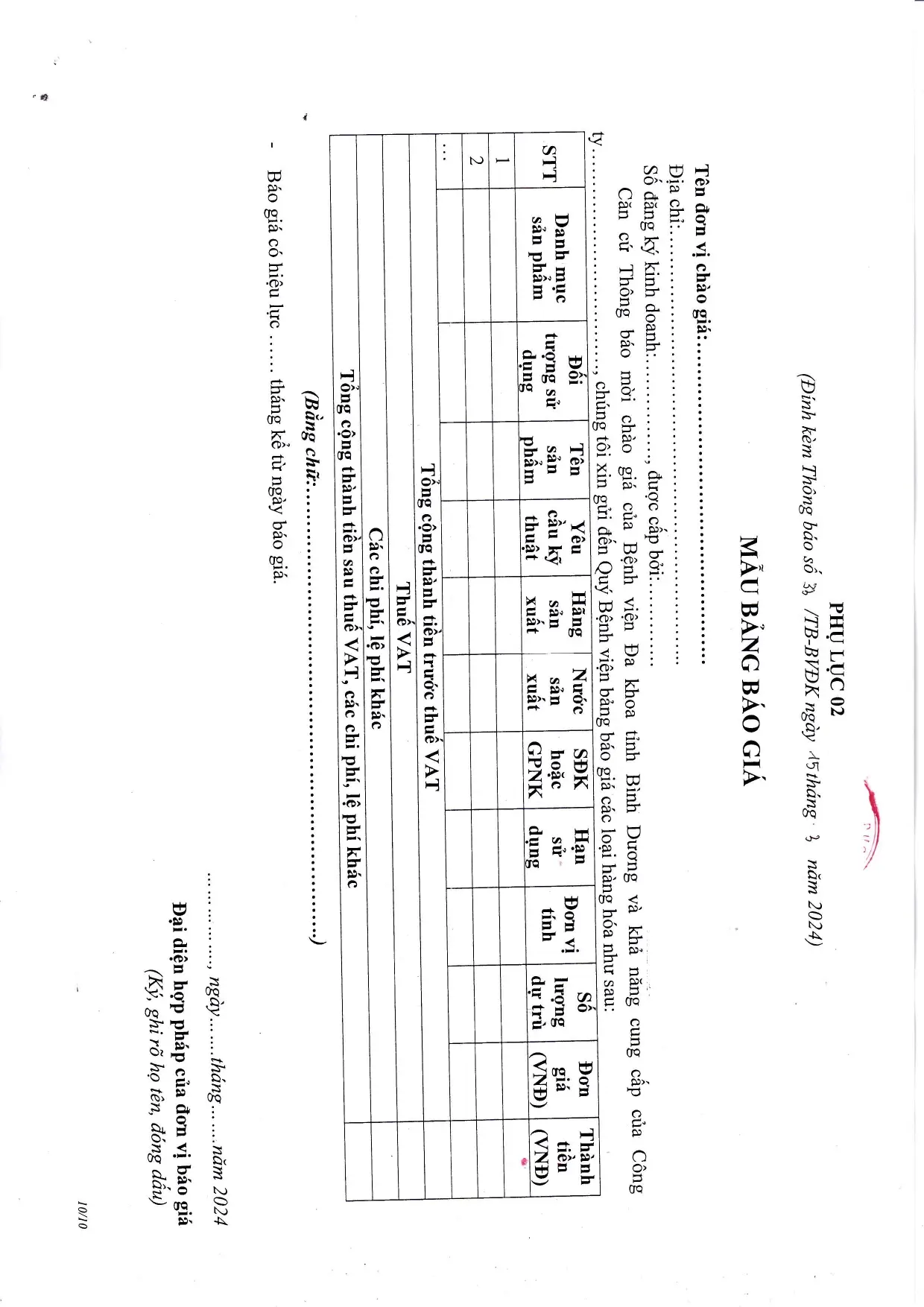 📣📣📣 THÔNG BÁO MỜI CHÀO GIÁ (33/TB-BVĐK)