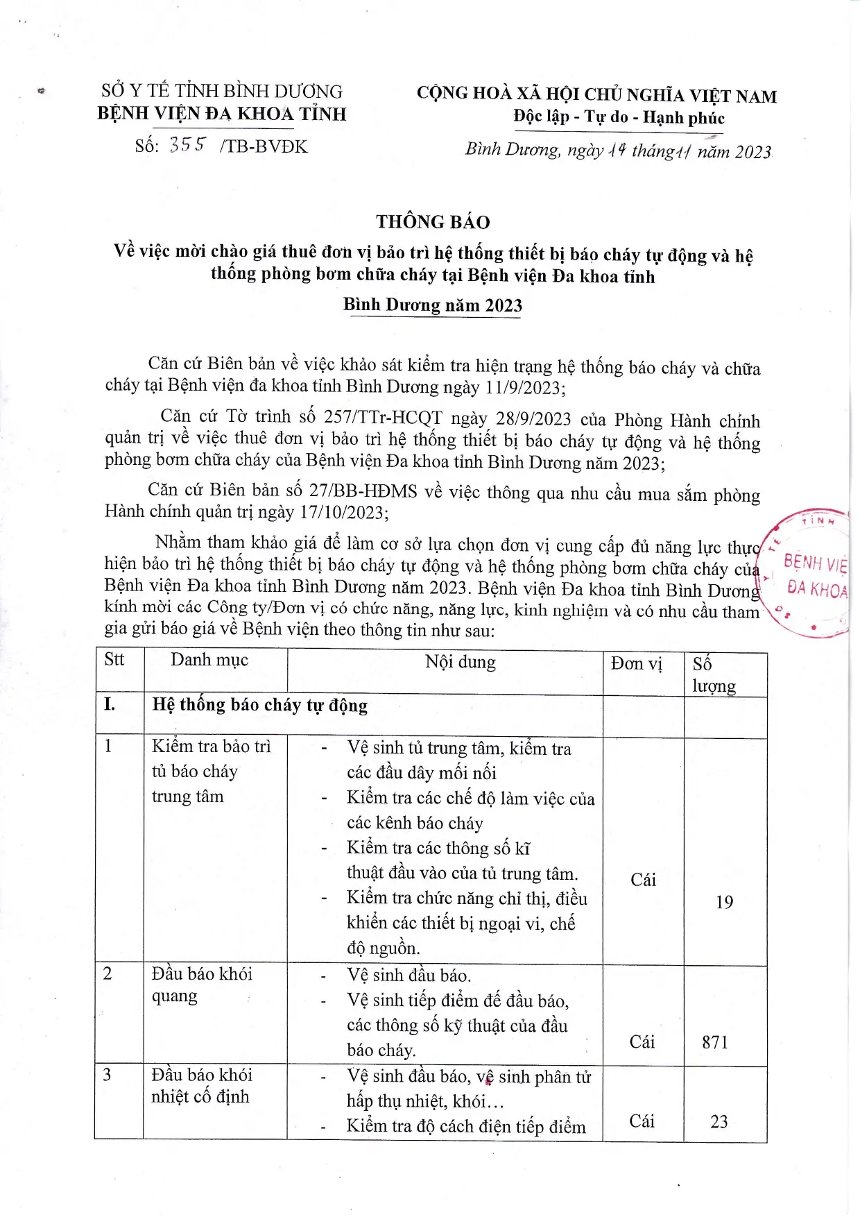 📣📣📣 THÔNG BÁO MỜI CHÀO GIÁ (355/TB-BVĐK)