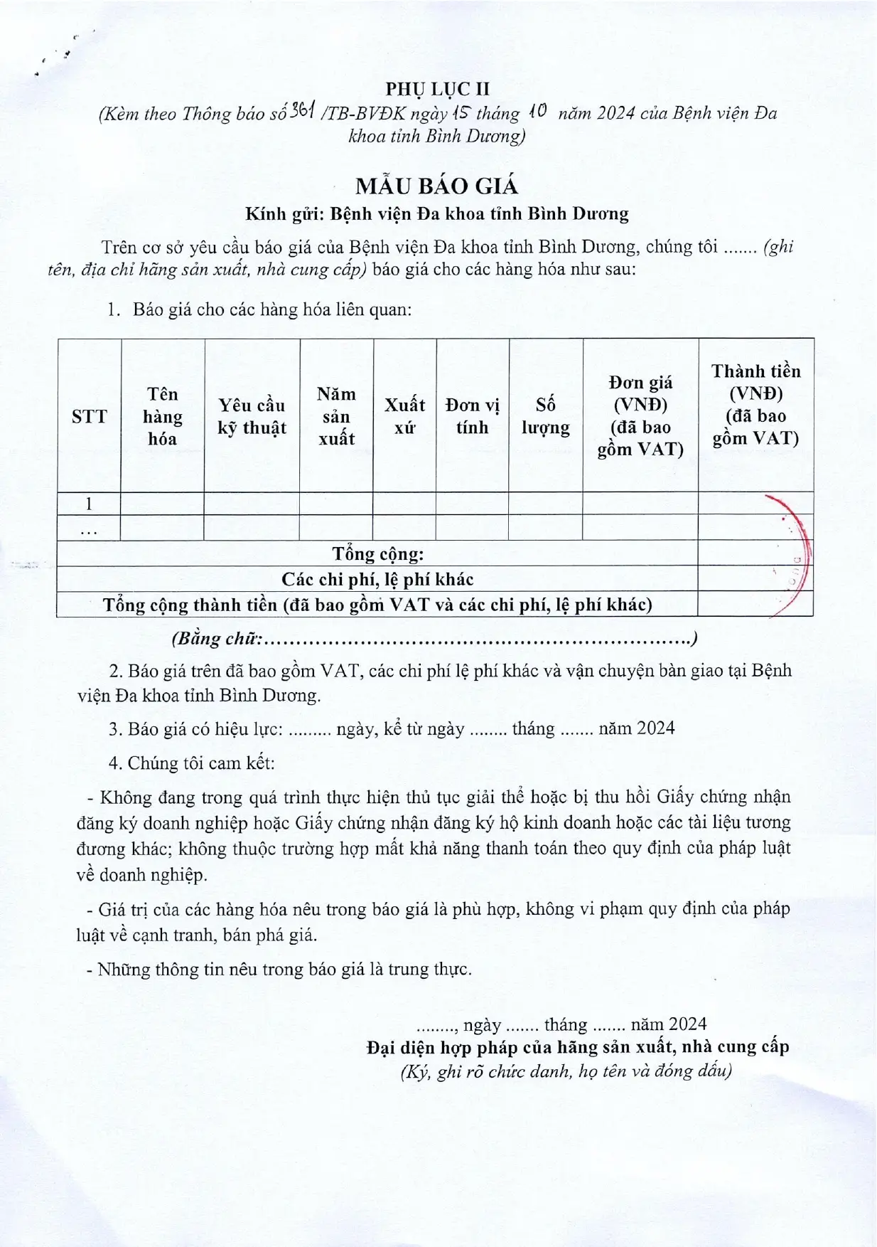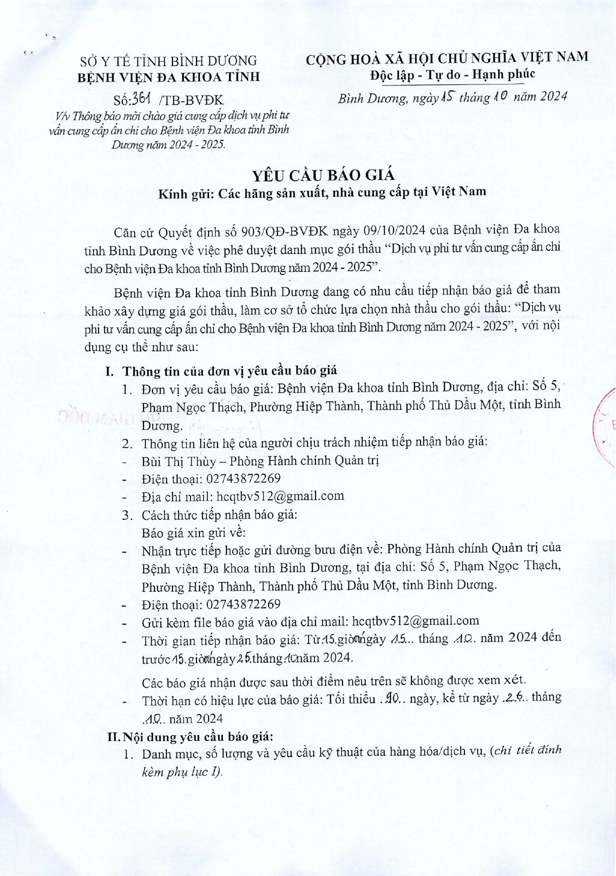 📣📣📣 THÔNG BÁO MỜI CHÀO GIÁ (361/TB-BVĐK)