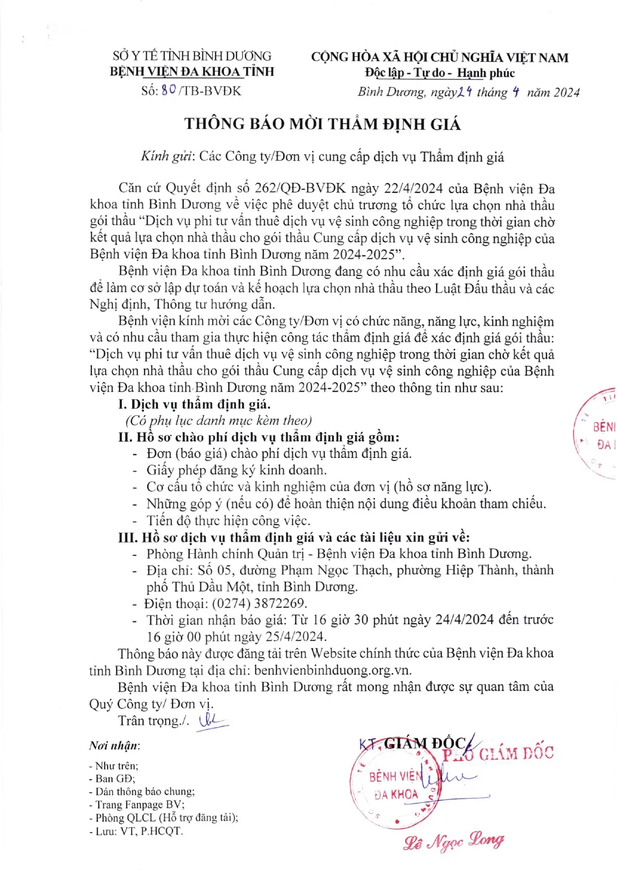 📣📣📣 THÔNG BÁO MỜI THẨM ĐỊNH GIÁ (80/TB-BVĐK)