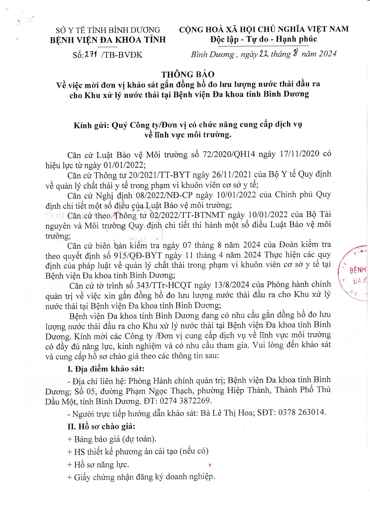📣📣📣THÔNG BÁO (271/TB-BVĐK)