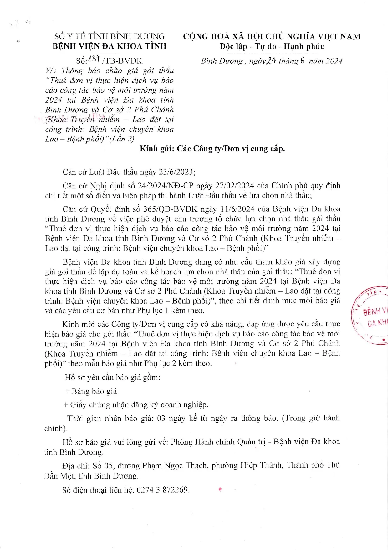 📣📣📣THÔNG BÁO CHÀO GIÁ (184/TB-BVĐK)