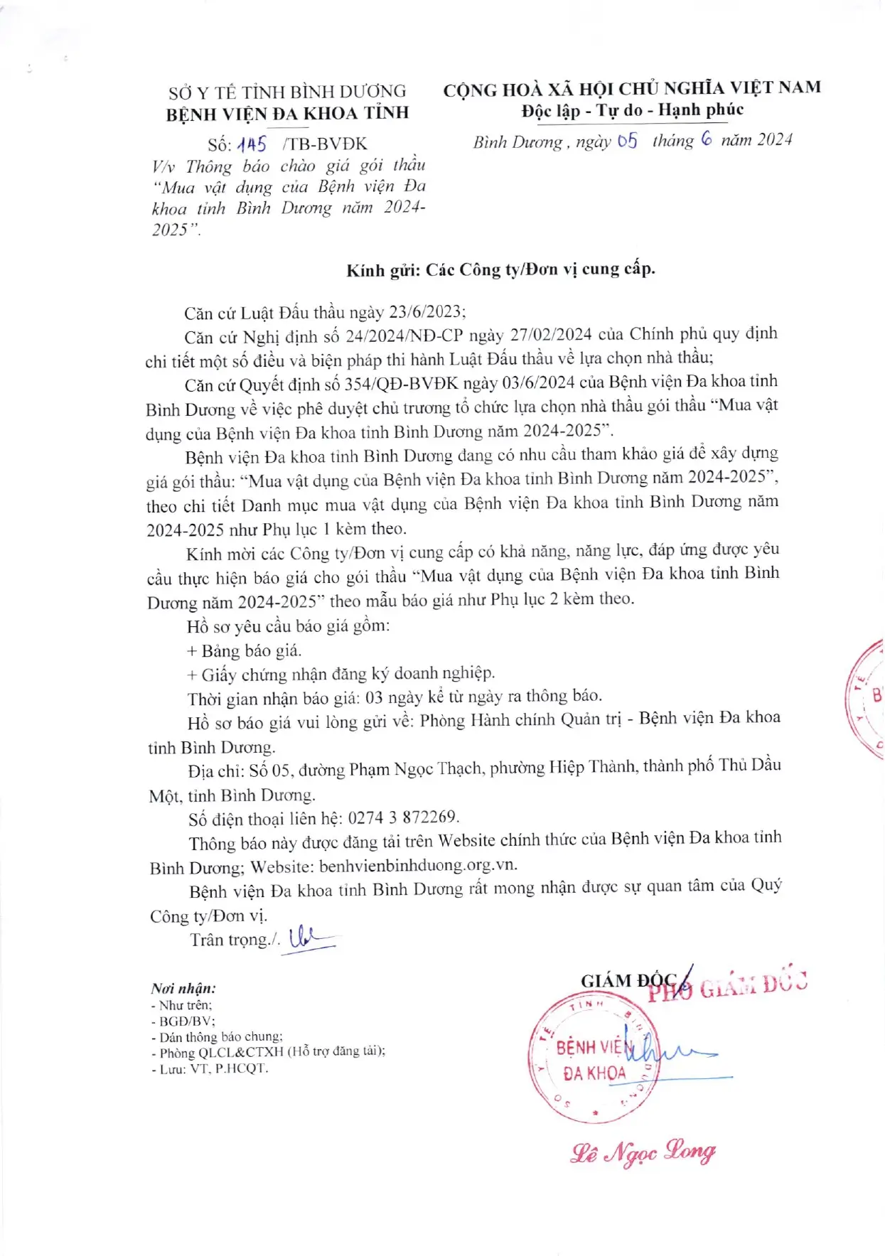 📣📣📣THÔNG BÁO MỜI CHÀO GIÁ (145/TB-BVĐK)