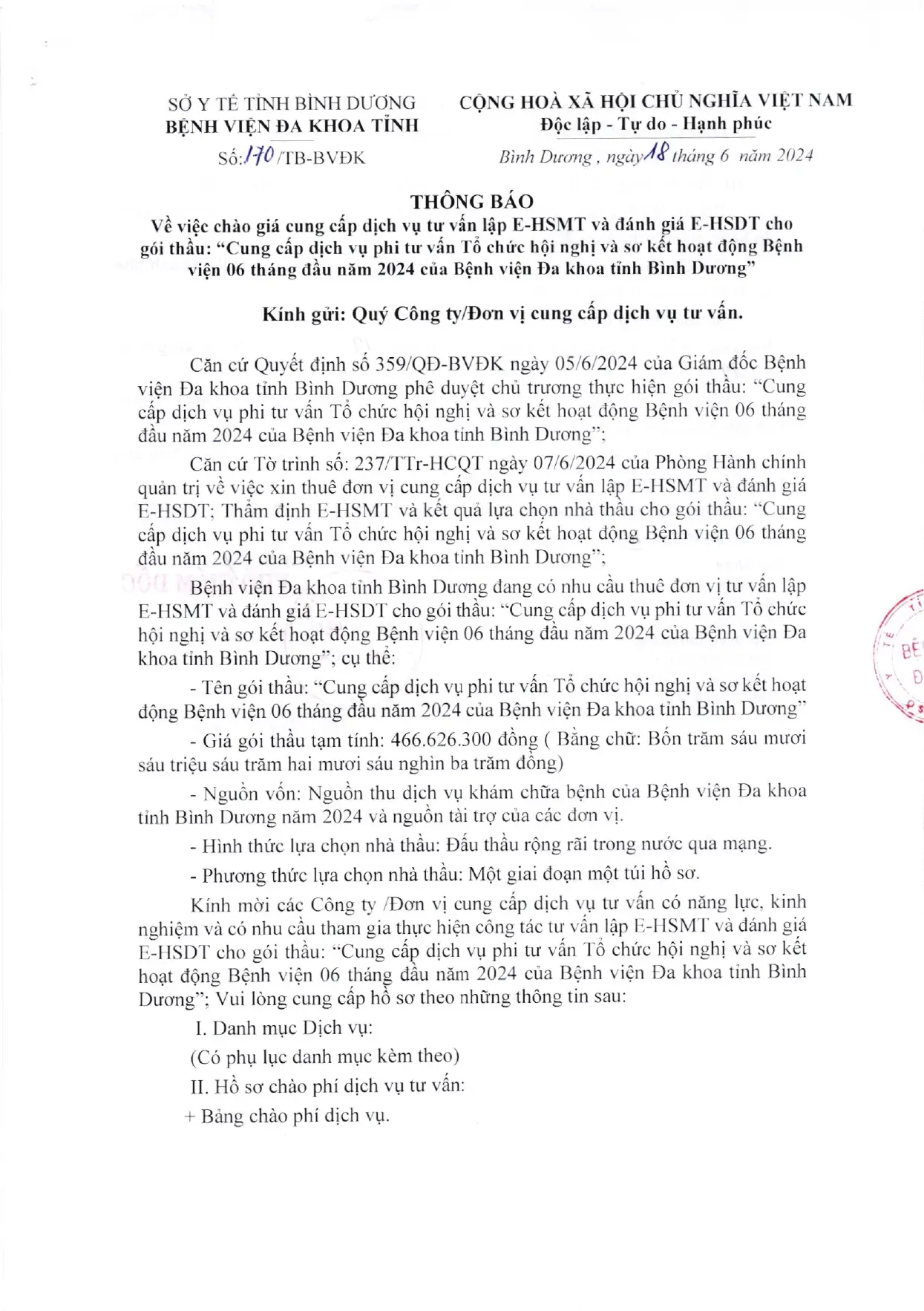 📣📣📣THÔNG BÁO MỜI CHÀO GIÁ (170/TB-BVĐK)