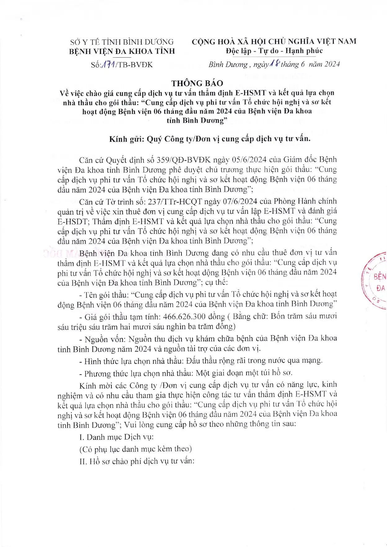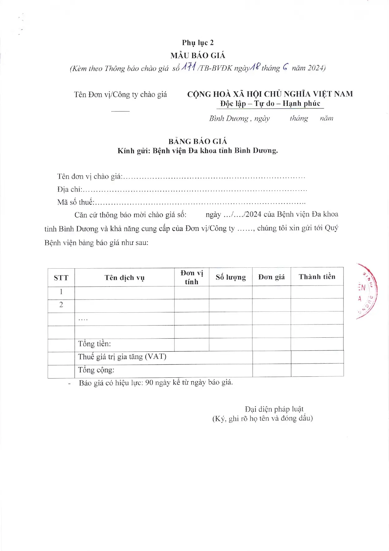 📣📣📣THÔNG BÁO MỜI CHÀO GIÁ (171/TB-BVĐK)