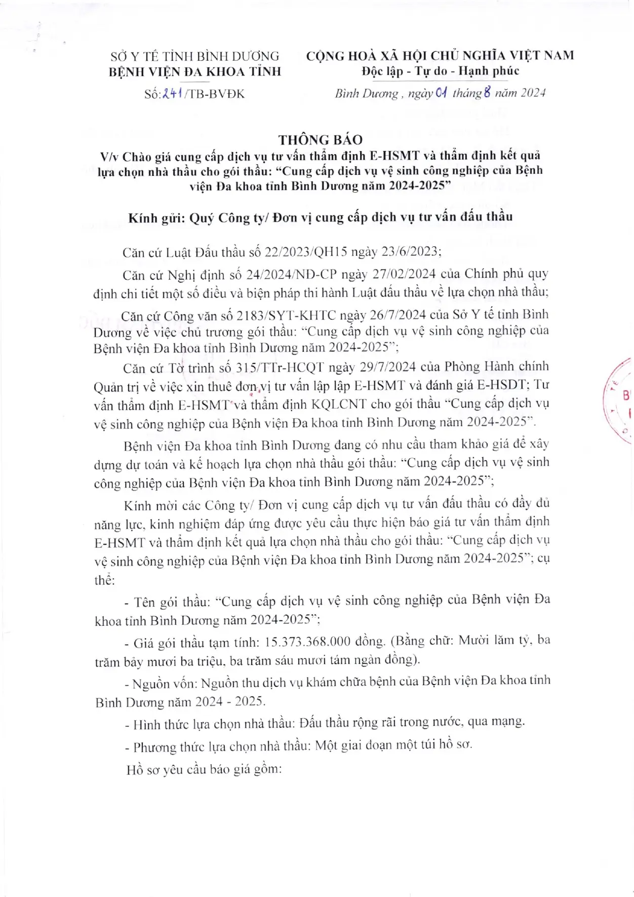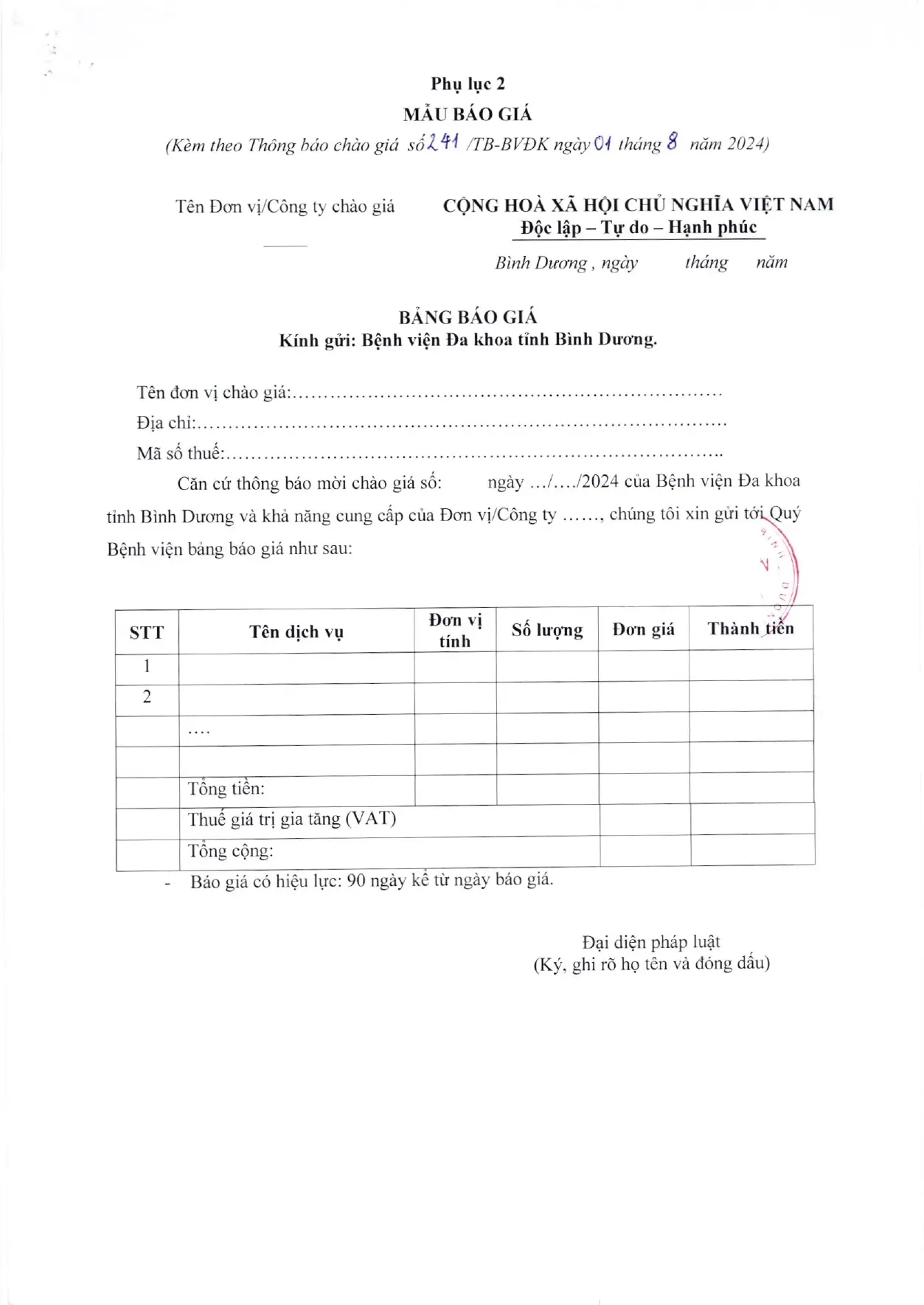 📣📣📣THÔNG BÁO MỜI CHÀO GIÁ (241/TB-BVĐK)