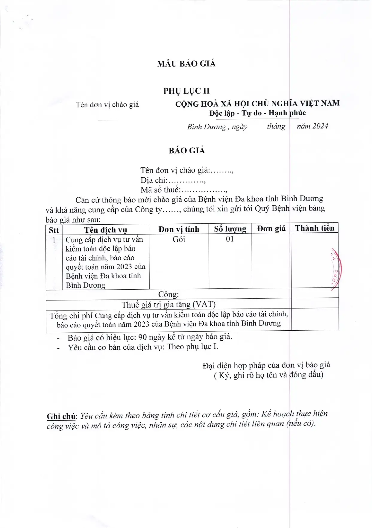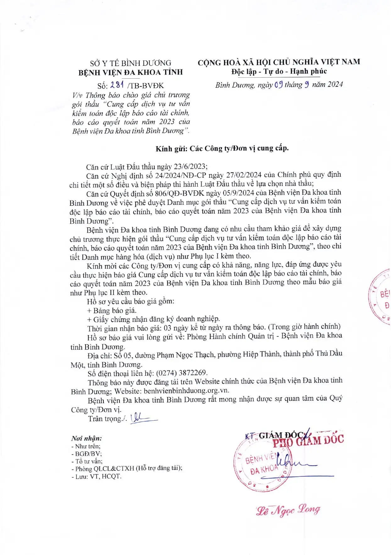 📣📣📣THÔNG BÁO MỜI CHÀO GIÁ (281/TB-BVĐK)