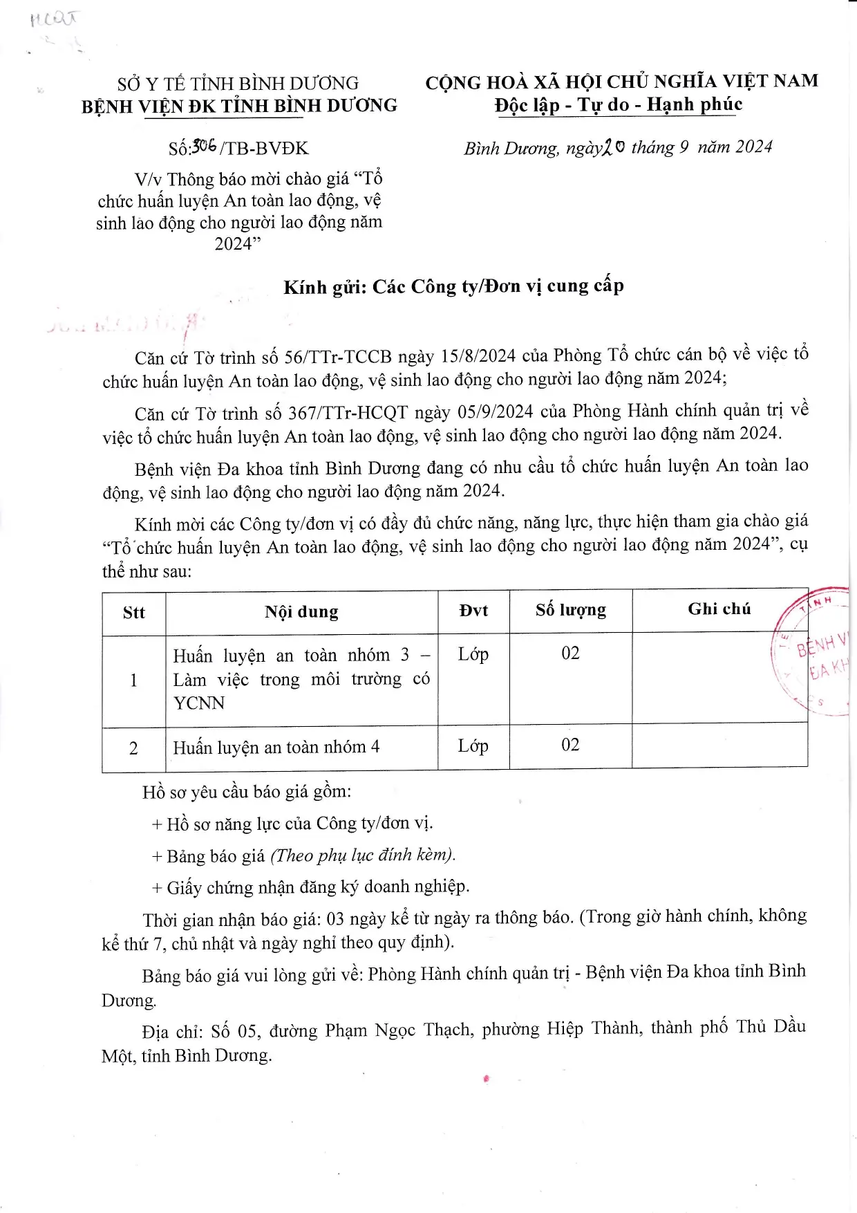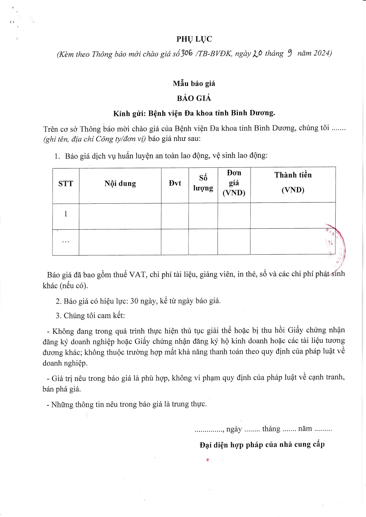 📣📣📣THÔNG BÁO MỜI CHÀO GIÁ (306/TB-BVĐK)