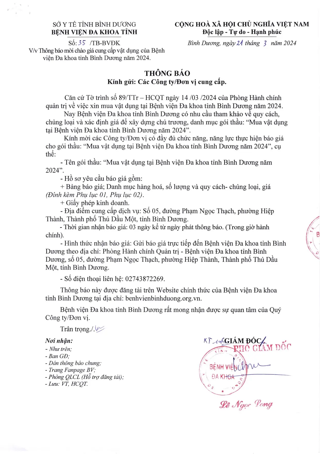 📣📣📣THÔNG BÁO MỜI CHÀO GIÁ (35/TB-BVĐK)