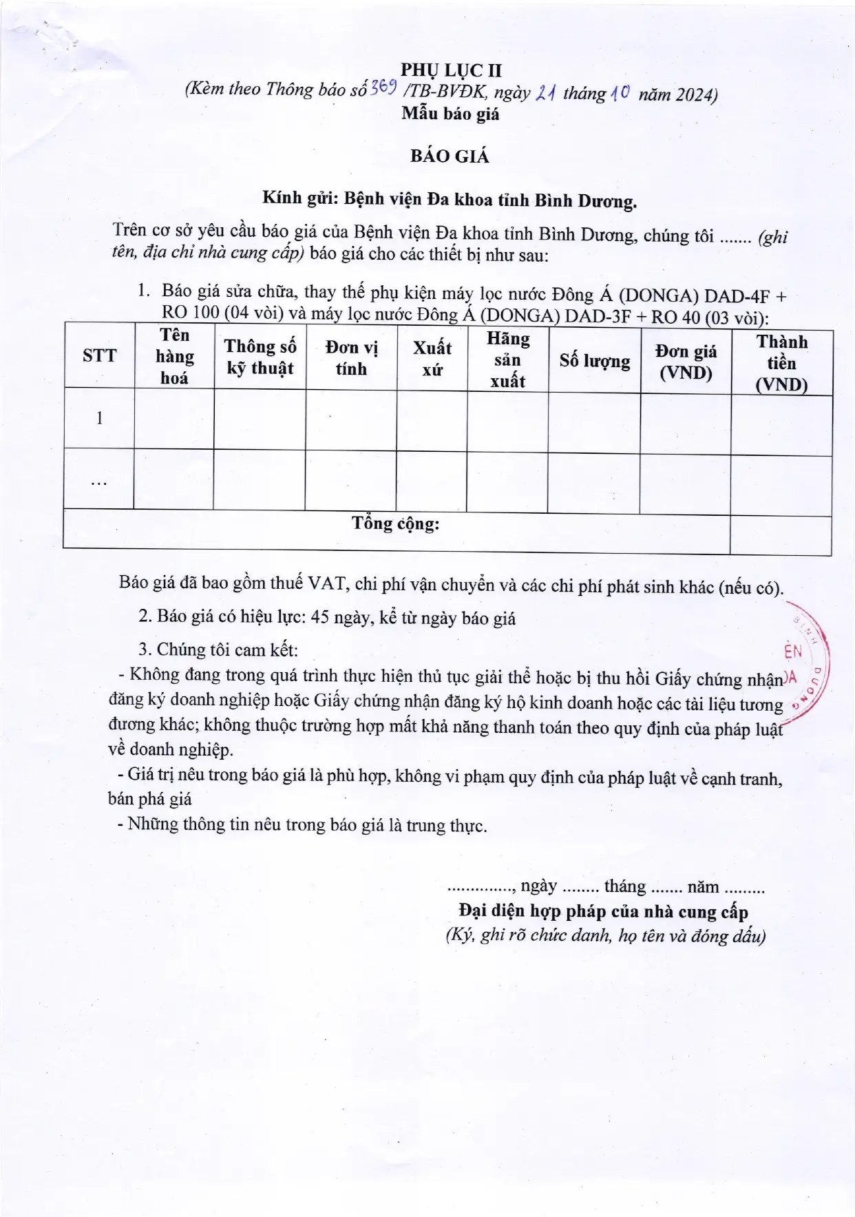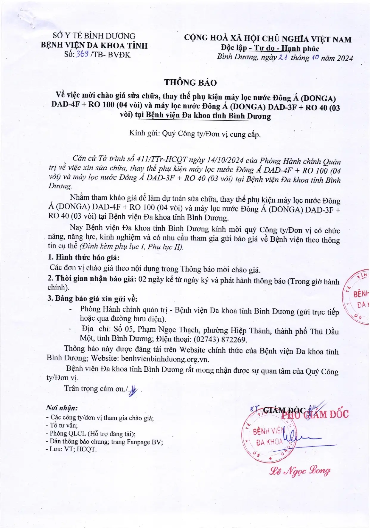 📣📣📣THÔNG BÁO MỜI CHÀO GIÁ (369/TB-BVĐK)
