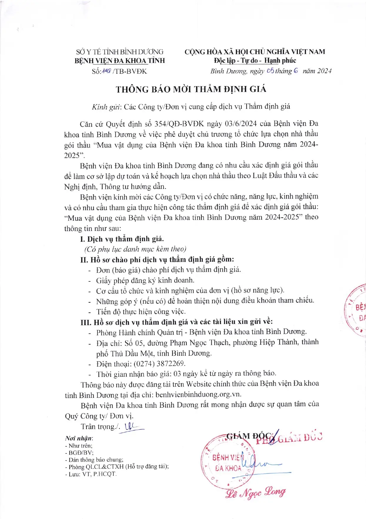 📣📣📣THÔNG BÁO MỜI THẨM ĐỊNH GIÁ (148/TB-BVĐK)