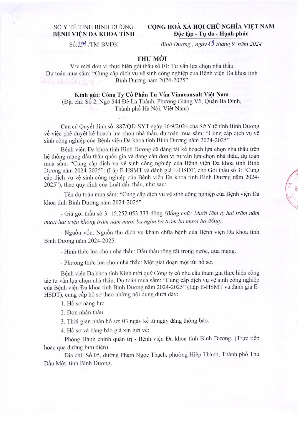 📣📣📣THƯ MỜI (291/TB-BVĐK)