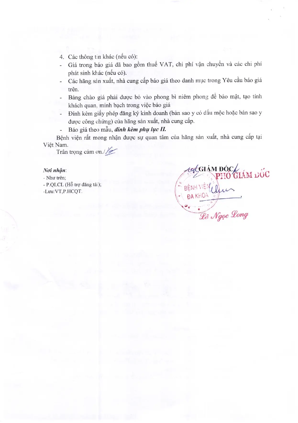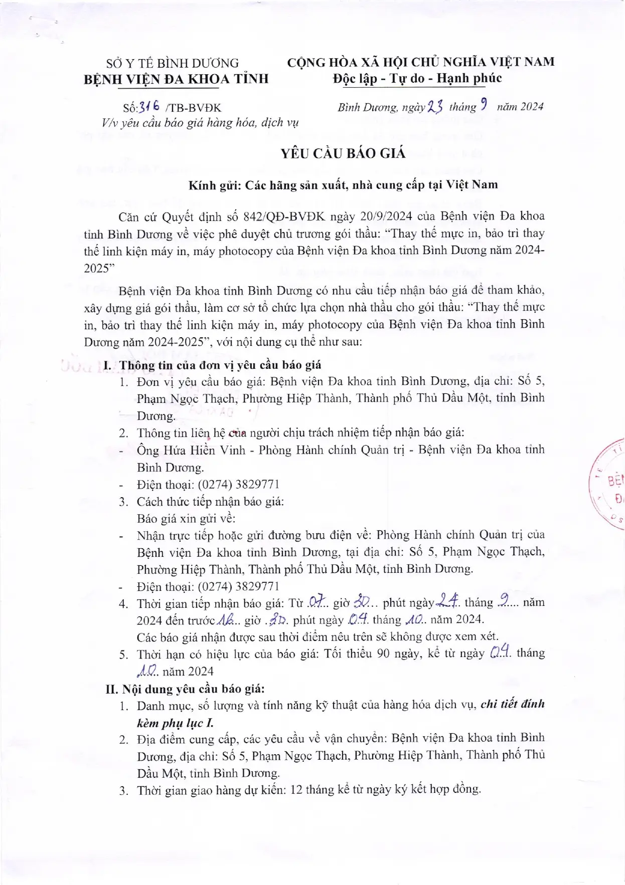 📣📣📣YÊU CẦU BÁO GIÁ (316/TB-BVĐK)