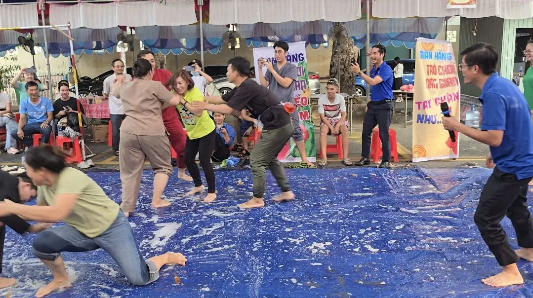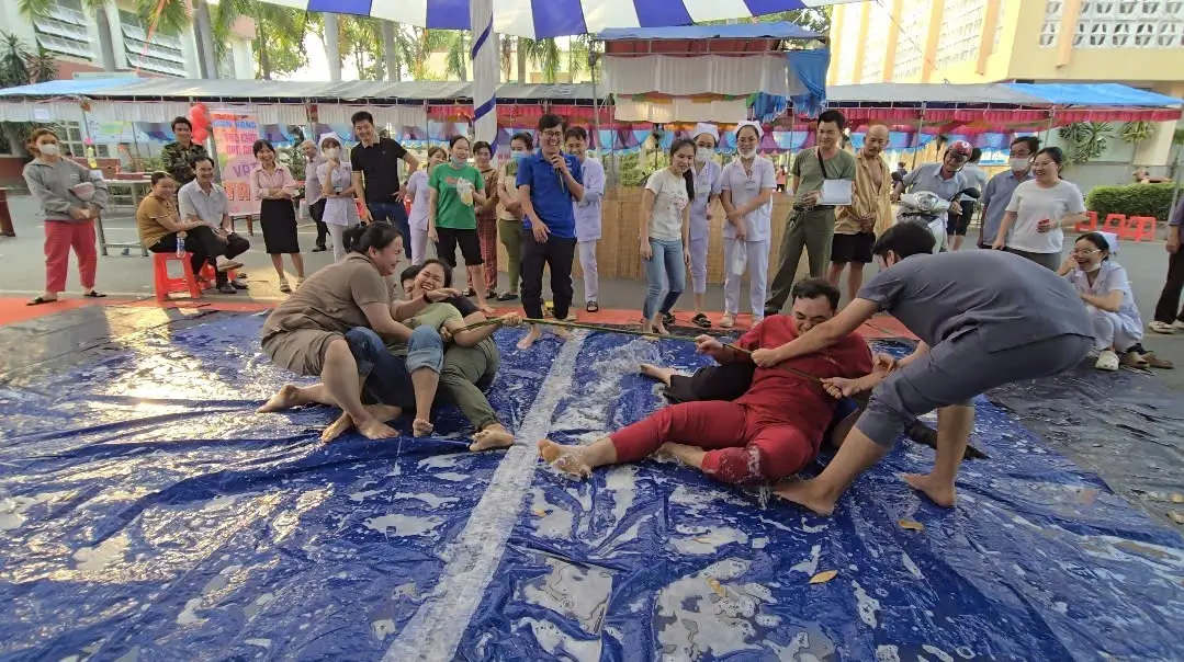 Đặc biệt trong không gian xuân các hoạt động tập thể vui nhộn cũng thu hút sự chú ý của tất cả mọi người như trò chơi: bắt vợ gả chồng, lễ hội sắc màu, níu kéo trái tim, tay chân như một, dưới bảo trên phải nghe, vòng tròn may mắn…. Những hoạt động này không chỉ tạo nên bầu không khí vui vẻ, rộn ràng tiếng cười mà còn giúp các thành viên rèn luyện tinh thần đoàn kết, cùng sức mạnh tinh thần.