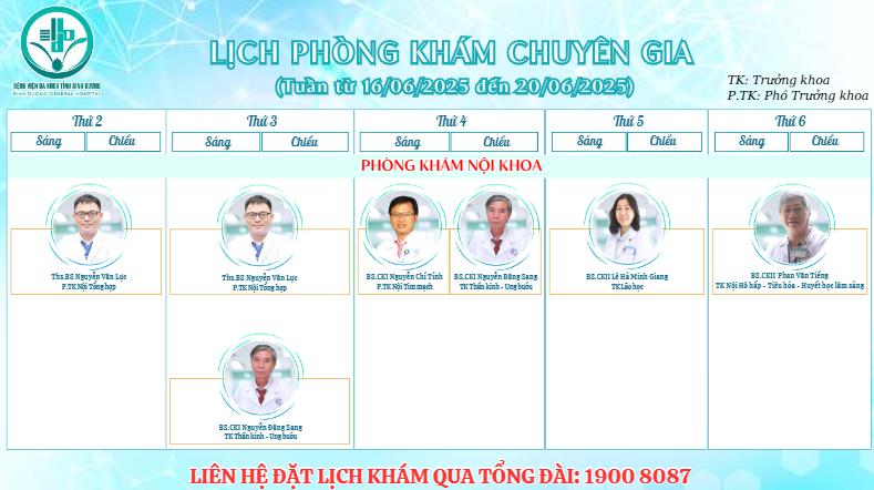 Lịch phòng khám chuyên gia (Tuần từ 28/04/2025 đến 02/05/2025)
