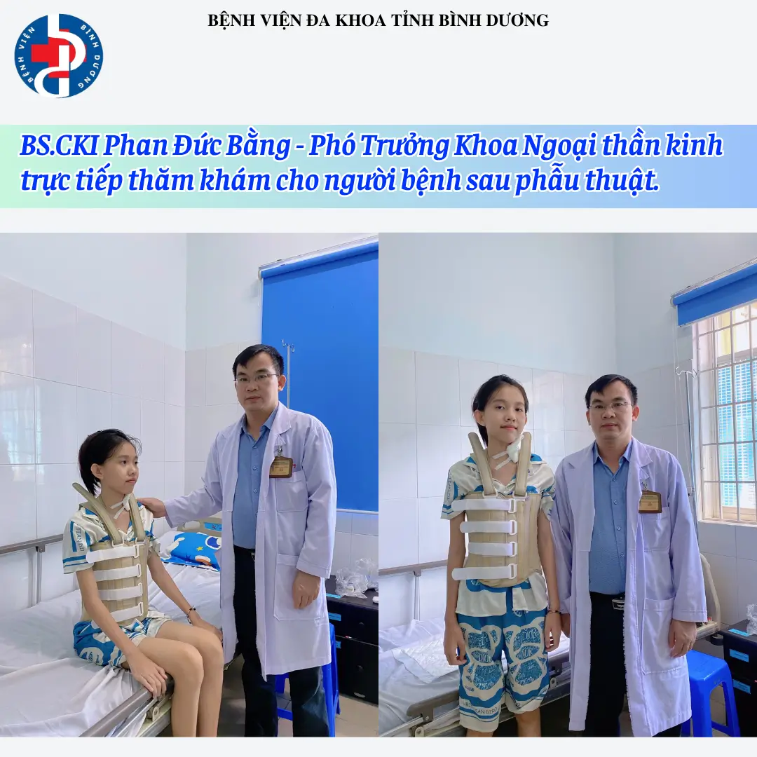 🔷Vừa qua ngày 28/07/2024, Khoa Ngoại thần kinh – Bệnh viện Đa khoa tỉnh Bình Dương vừa tiếp nhận thực hiện thành công ca phẫu thuật chỉnh vẹo cột sống bằng kỹ thuật can thiệp tối thiểu cho một người bệnh nữ (13 tuổi). Với phương pháp này, chỉ sau 1 ngày phẫu thuật người bệnh đã có thể đi lại, vận động nhẹ nhàng.
