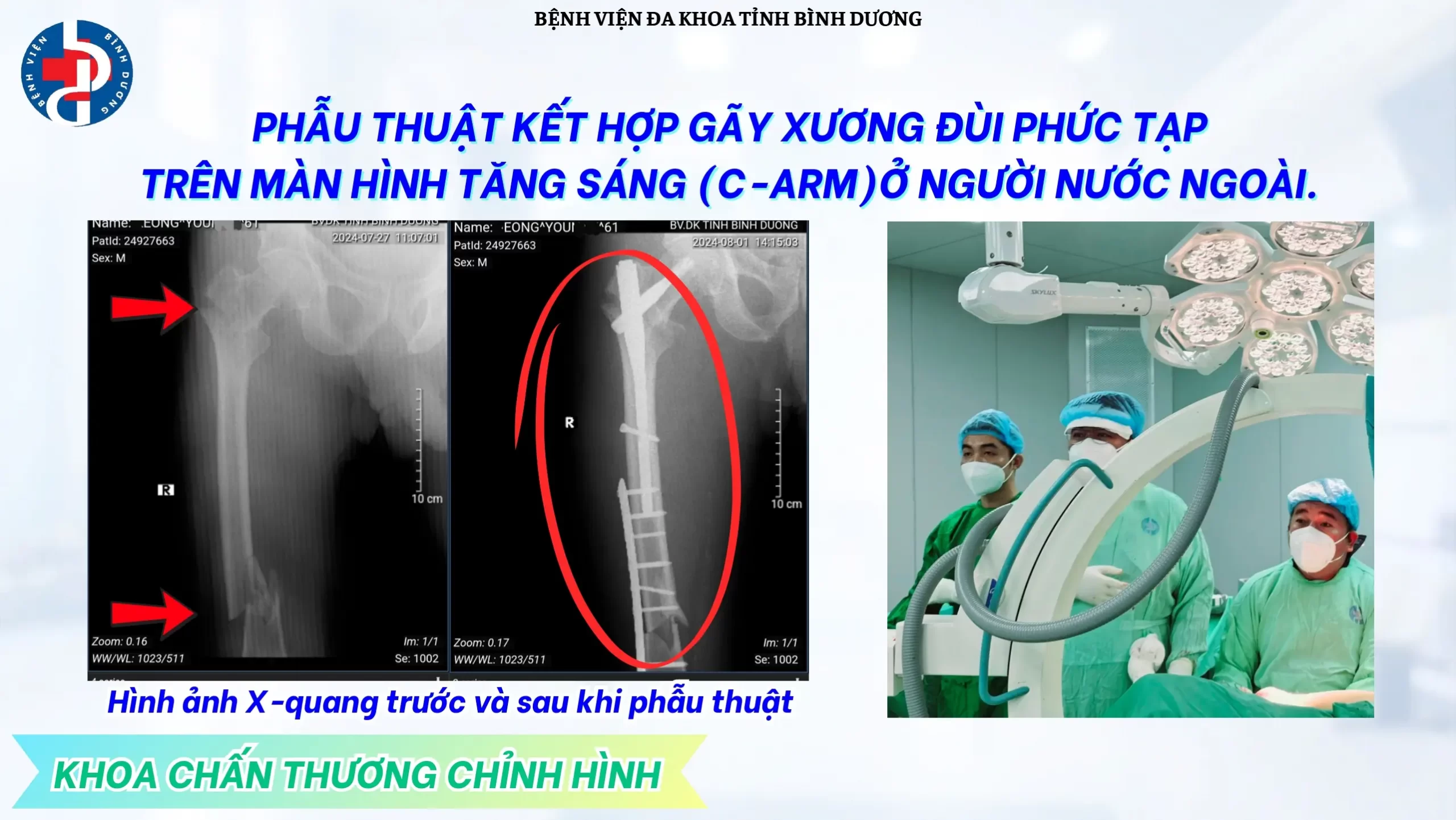 👉Vừa qua, ca phẫu thuật kết hợp xương phức tạp trên màn hình tăng sáng (C-arm) ở người nước ngoài đã được thực hiện tại Bệnh viện Đa khoa tỉnh Bình Dương.