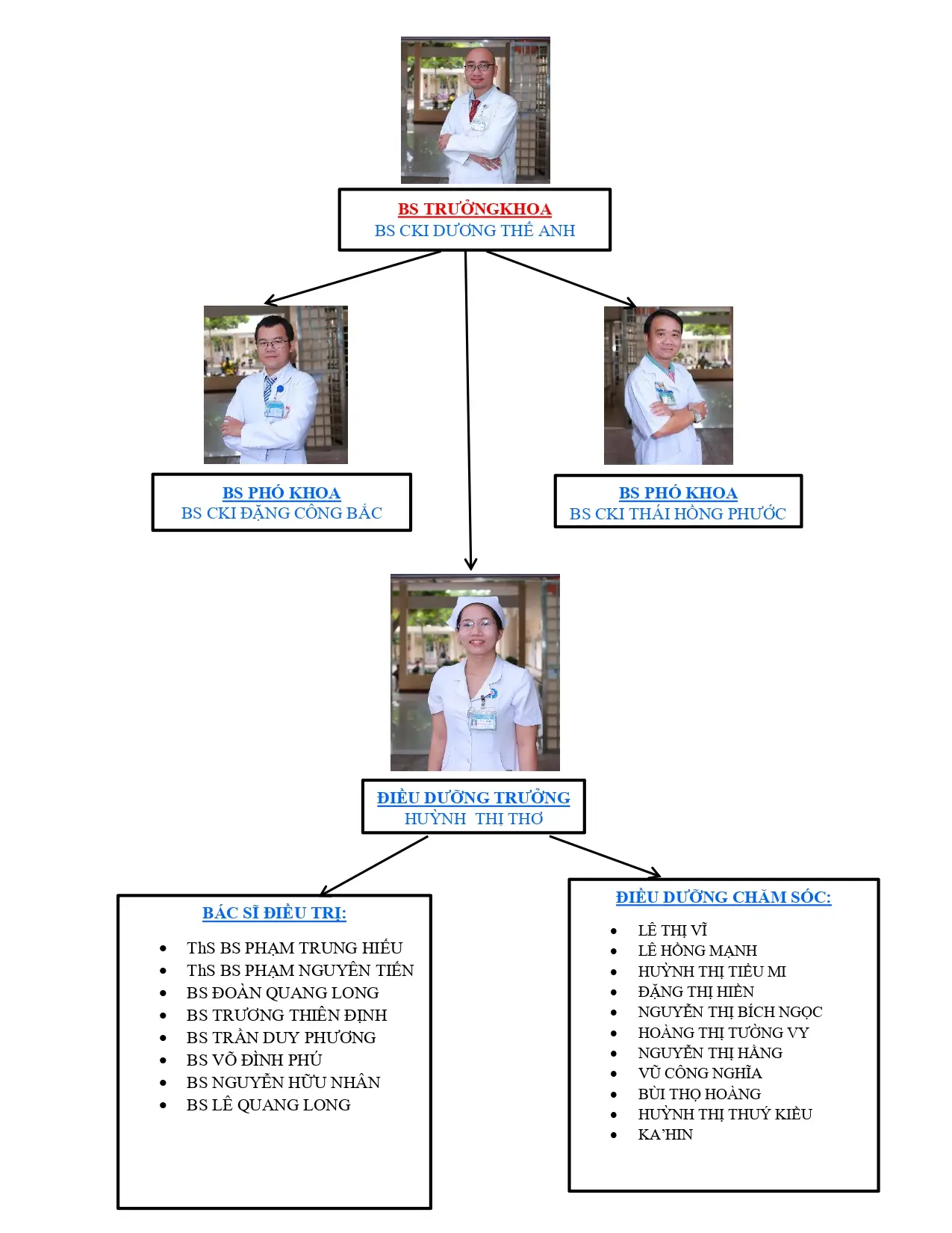 2. Tổ chức nhân sự:nhân lực hiện tại của khoa có 23 nhân viên trong đó bao gồm 11 bác sĩ và 12 điều dưỡng