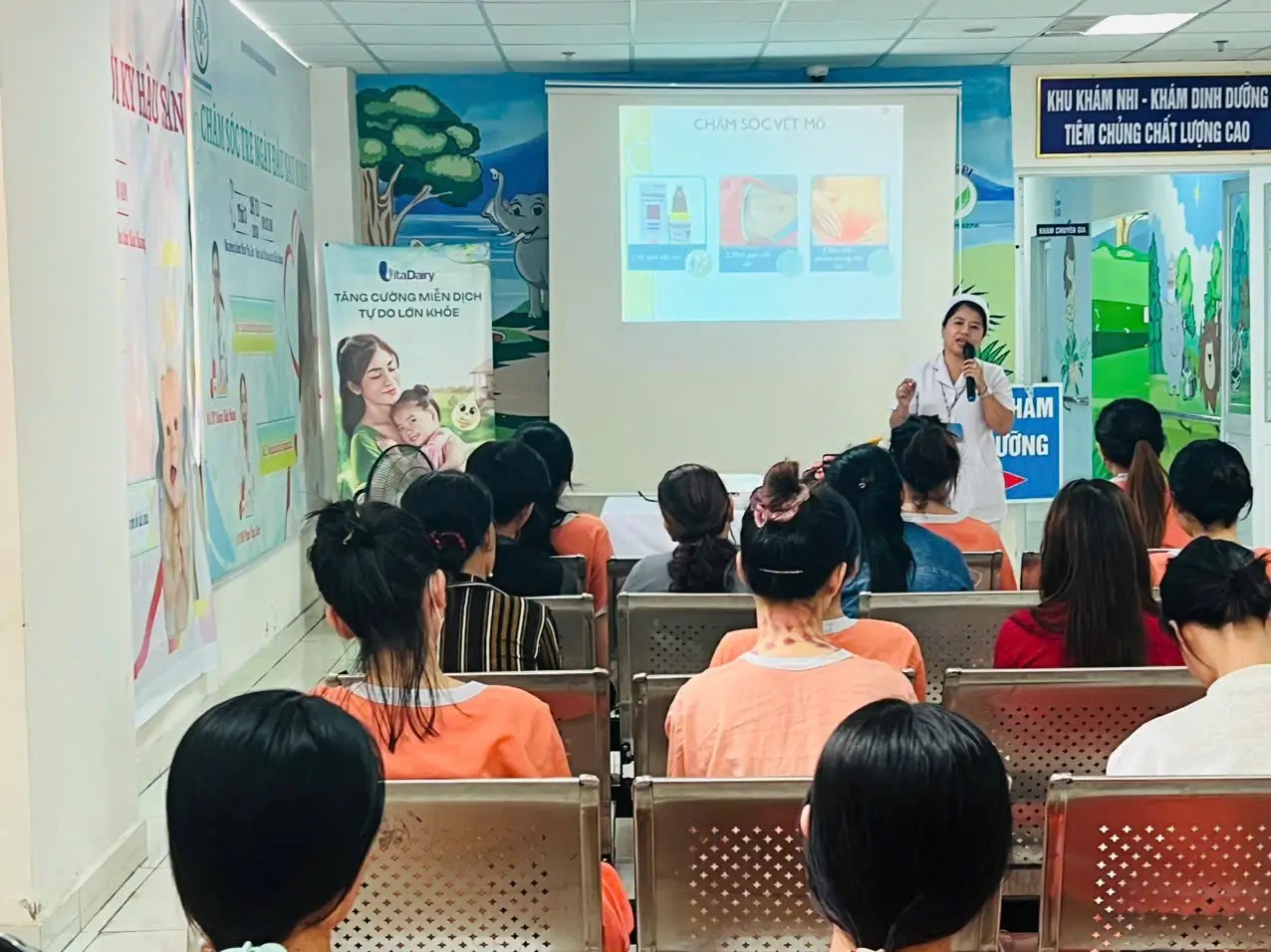 Bên cạnh đó, CN. Dương Thị Bích Vân đã chia sẻ về cách chăm sóc vết mổ sau sinh hoặc vết may tầng sinh môn đúng cách, giúp giảm nguy cơ nhiễm trùng và thúc đẩy quá trình hồi phục. Việc chăm sóc hậu sản đúng phương pháp không chỉ giúp mẹ bầu nhanh chóng lấy lại sức khỏe mà còn hạn chế những biến chứng không mong muốn.