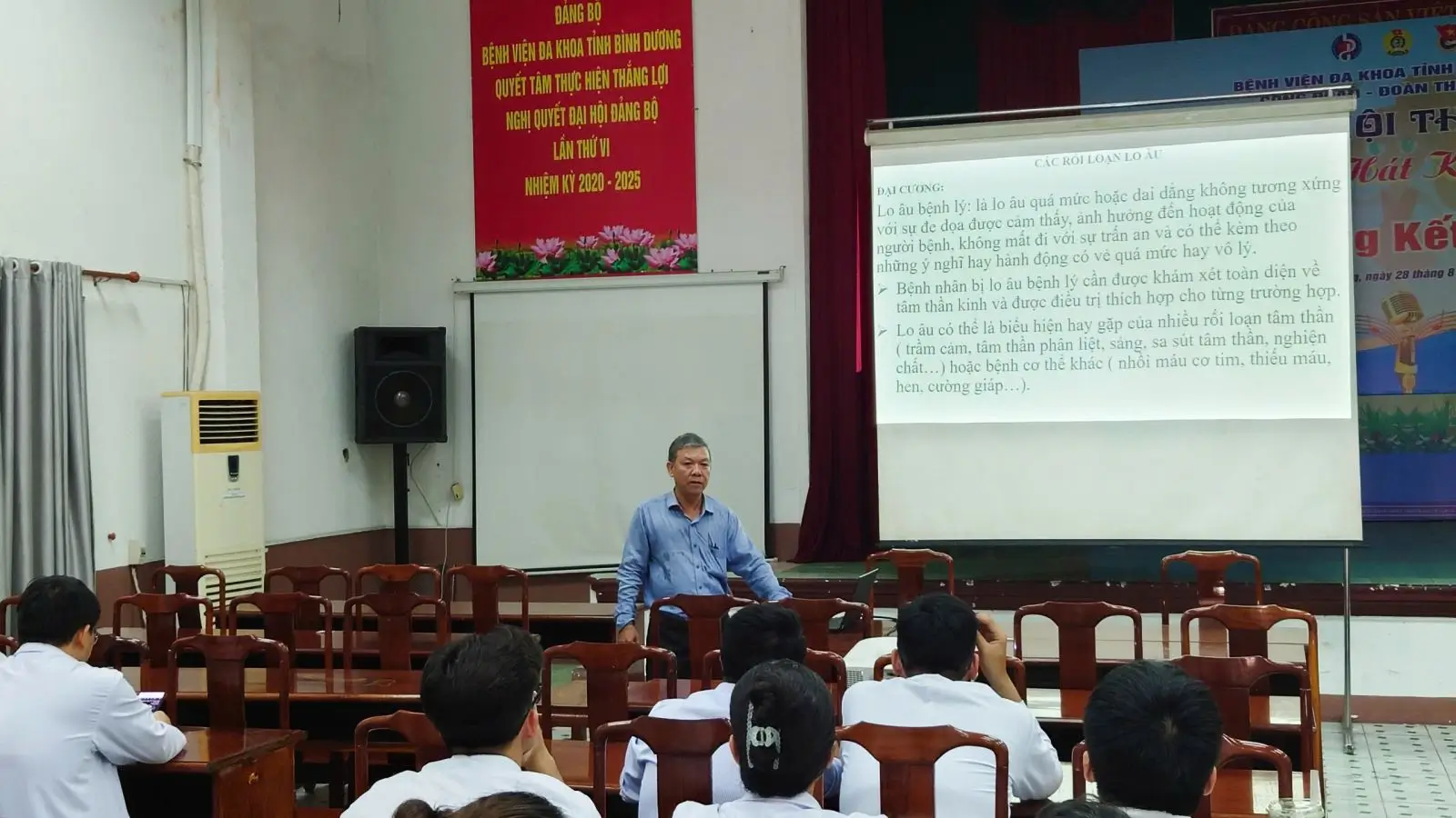 Nhằm nâng cao chất lượng nguồn nhân lực, cập nhật kiến thức chuyên khoa tâm thần giúp phát hiện sớm, quản lý và chăm sóc sức khỏe người bệnh cho nhân viên y tế. Bệnh viện Đa khoa tỉnh Bình Dương đã tổ chức lớp tập huấn chuyên đề “ Rối loạn lo âu, trầm cảm ”.